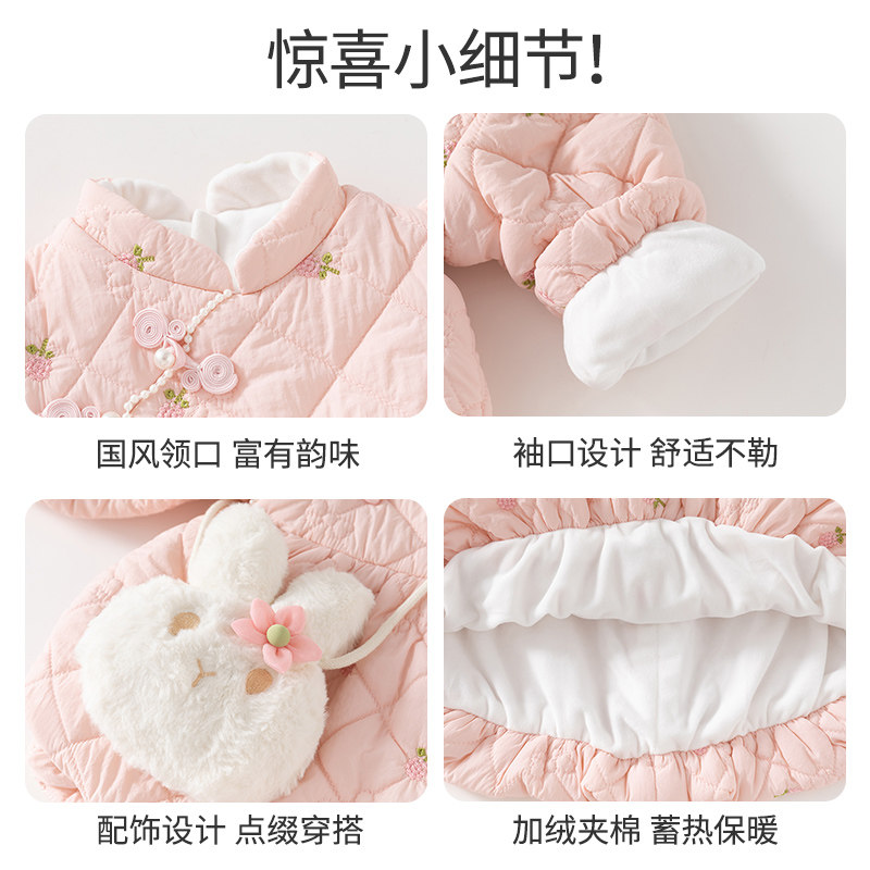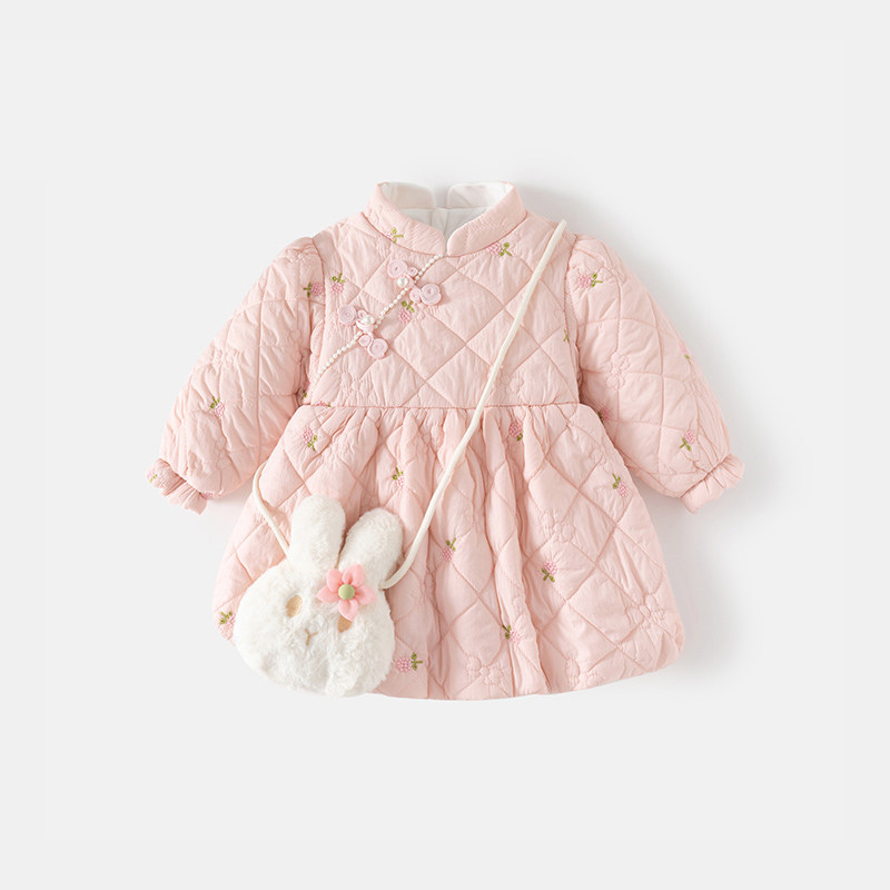 班喜迪女童连衣裙冬装2025新款儿童加绒夹棉裙子中国风宝宝公主裙