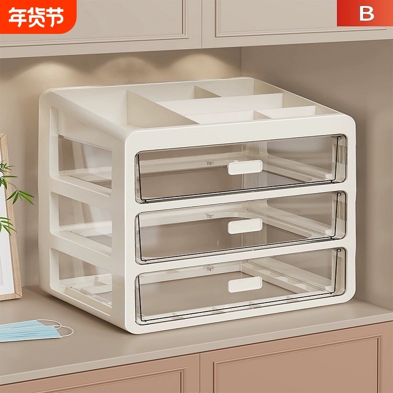 玄关口罩收纳盒桌面放钥匙收纳箱抽屉式分层储物盒多层三层化妆