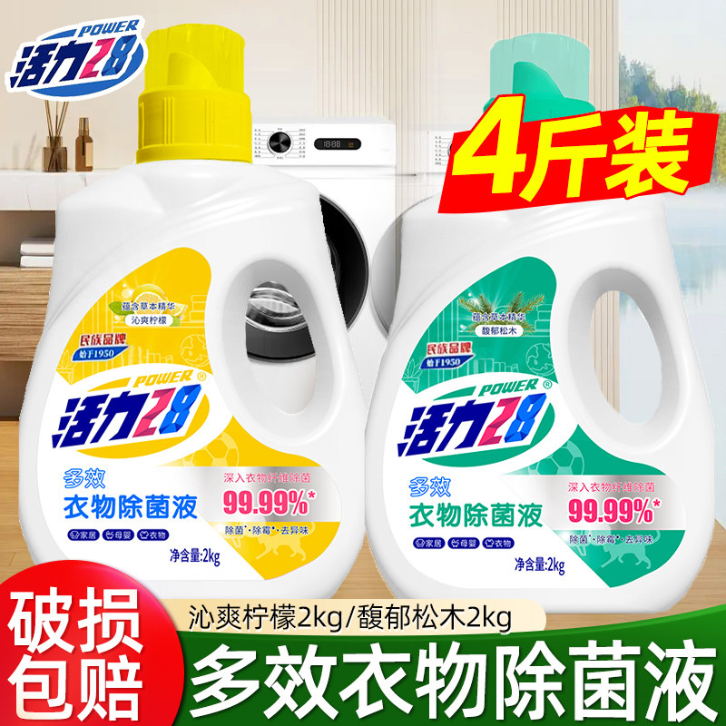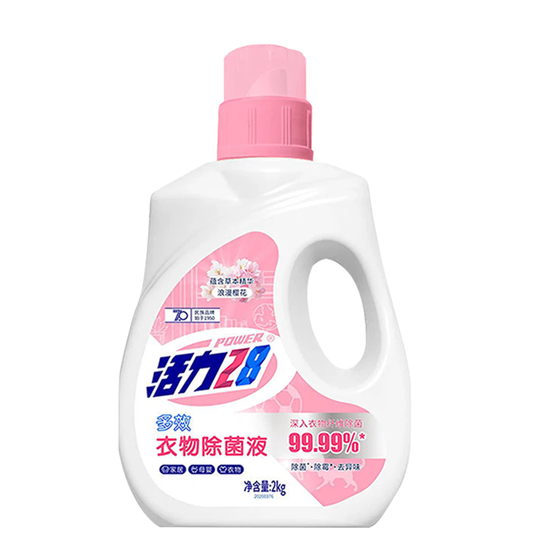活力28衣物除菌液2kg瓶装浪漫樱花多效除菌除螨除霉家用去异味