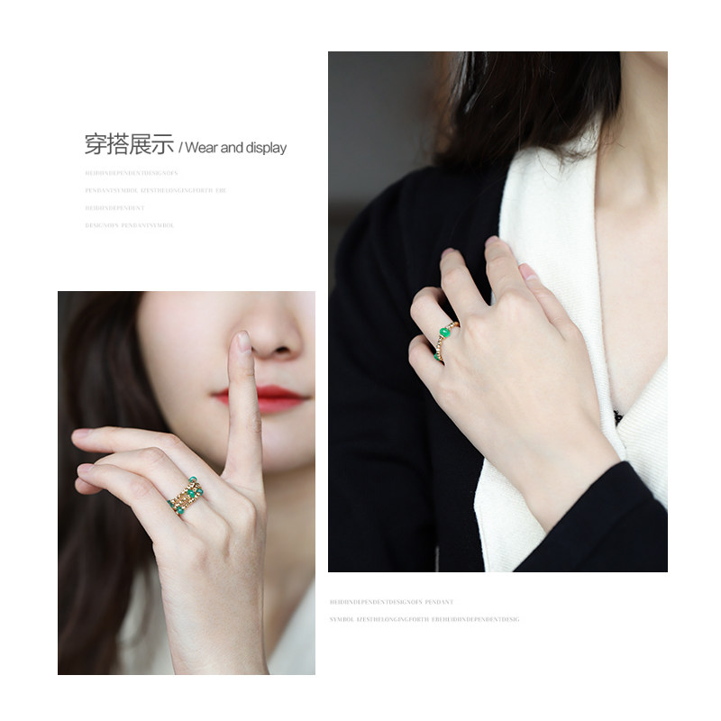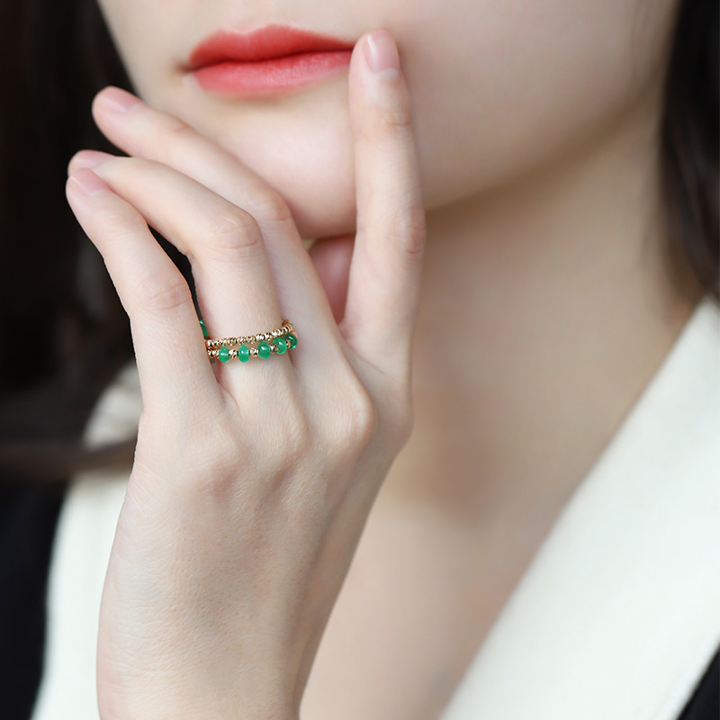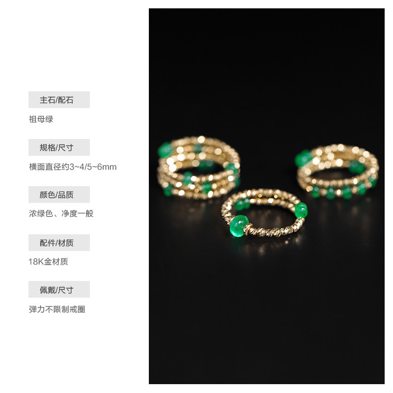 若华珠宝时光=赞比亚祖母绿戒指女18K金宝石尾戒彩宝套戒礼物定制