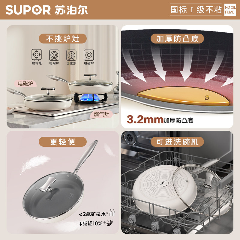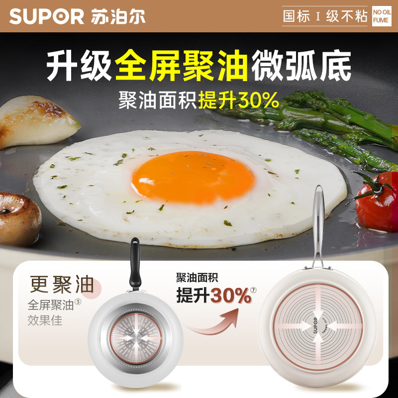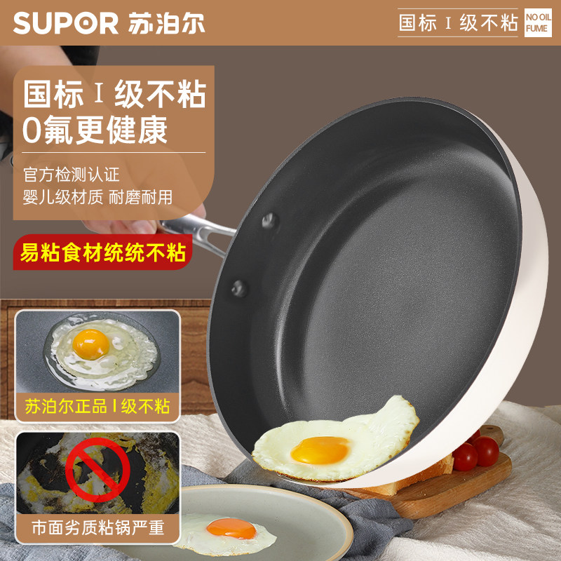 苏泊尔无氟陶瓷平底锅无涂层聚油不粘锅家用煎鸡蛋荷包蛋早餐煎锅