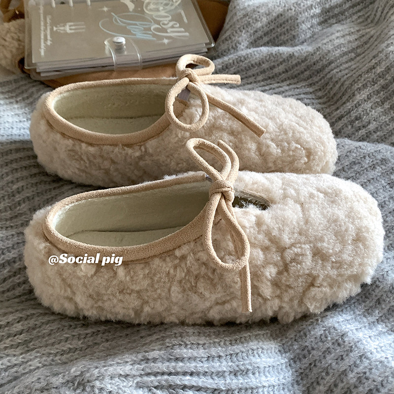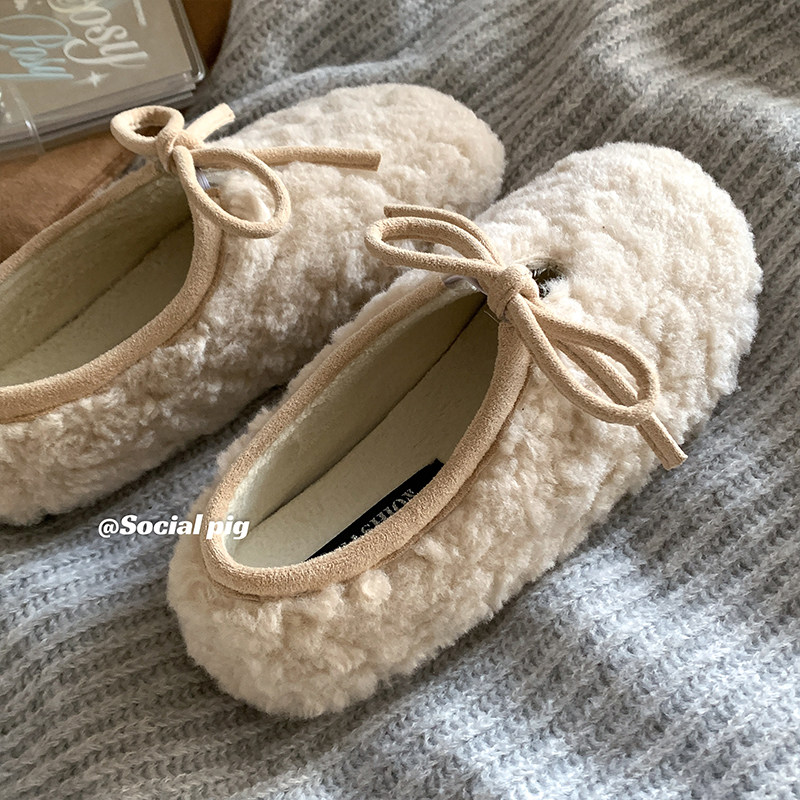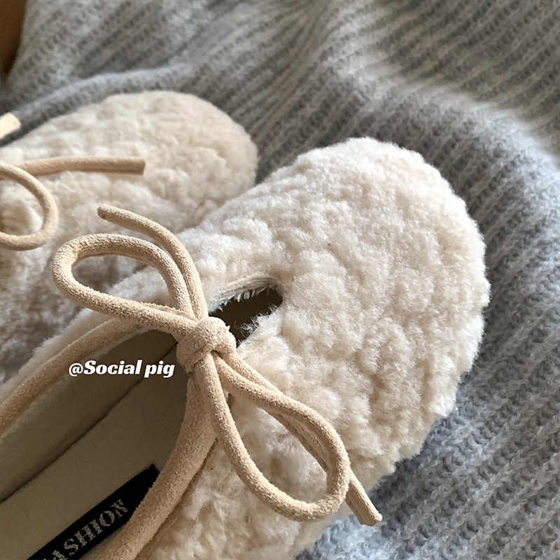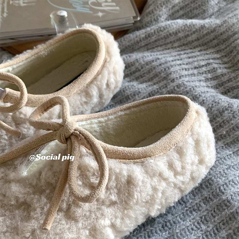 唔~太可爱了哇!平软底羊羔毛毛鞋女外穿秋冬季加绒单鞋棉鞋圆头