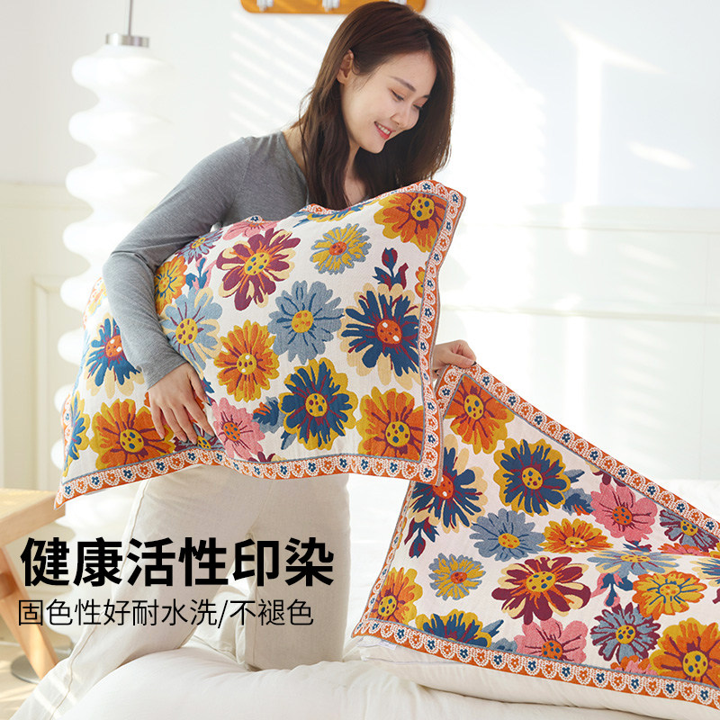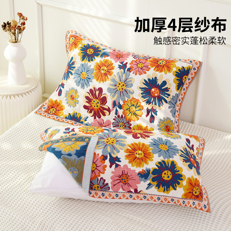 如奕纯棉一对装加厚四层纱布枕巾防头油四季通用全棉大盖巾垫巾