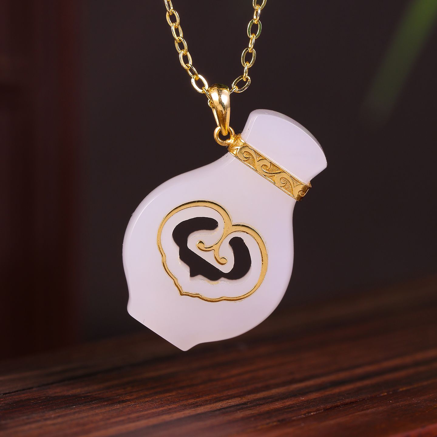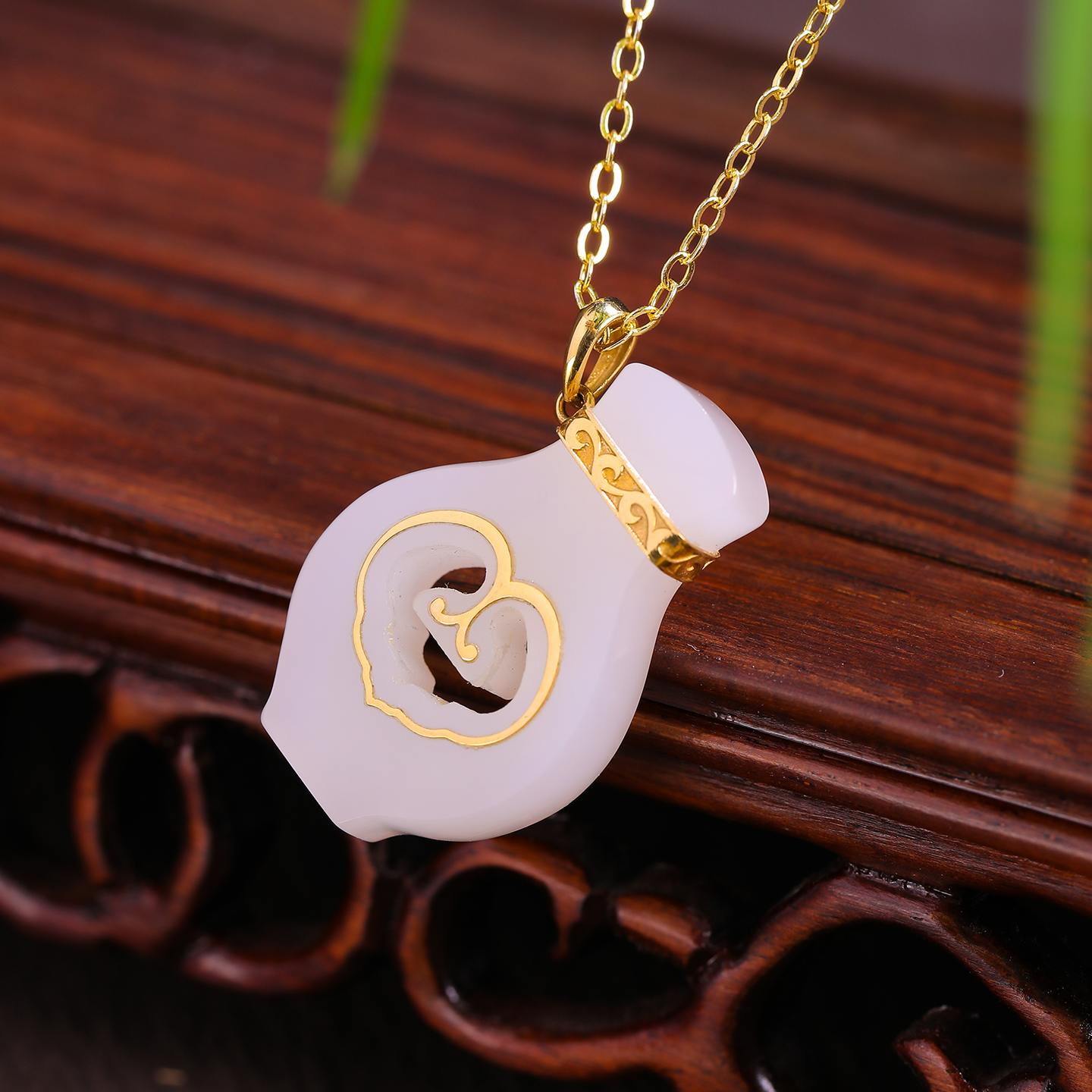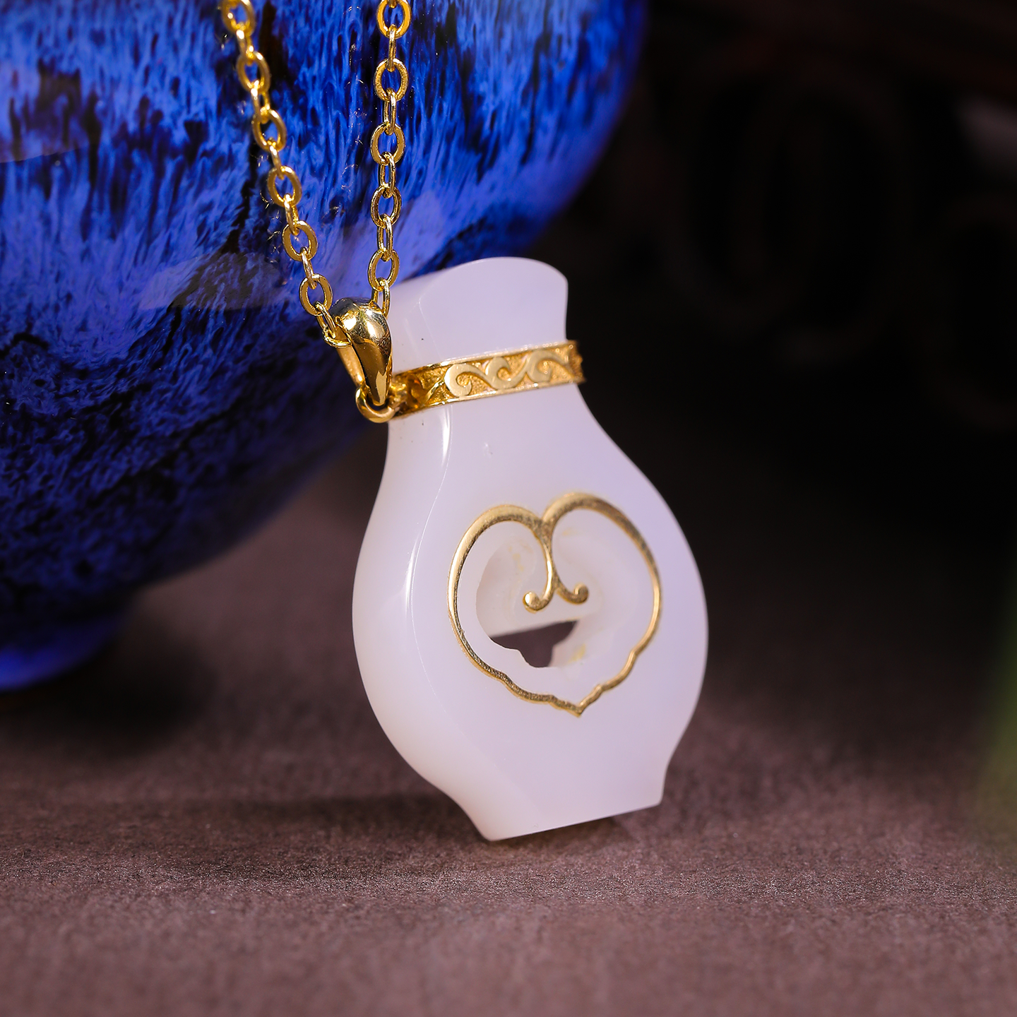 和合玉器和田玉羊脂白玉18k金镶玉平安挂件吊坠项链如意坠子男女