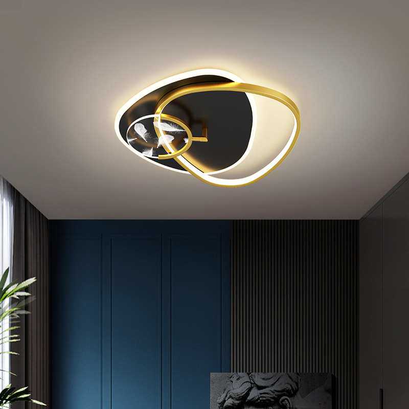 轻奢卧室灯现代简约大气吸顶灯具25年新款极简创意房间羽毛灯饰