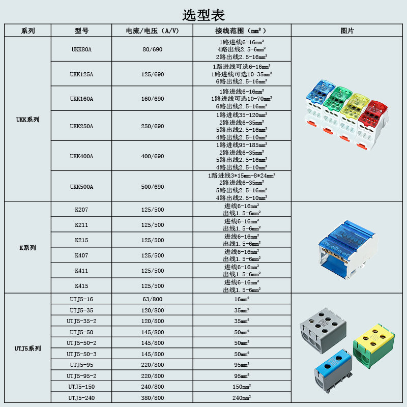 UKK125A单极分线盒导轨式接线端子一进多出并线器铜大电流端子排