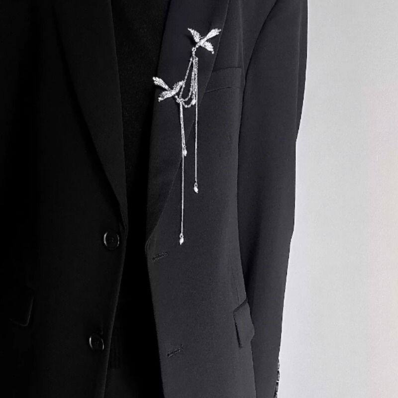 国风复古高级感国风胸花流苏小众设计感中性风银色胸针西服配饰