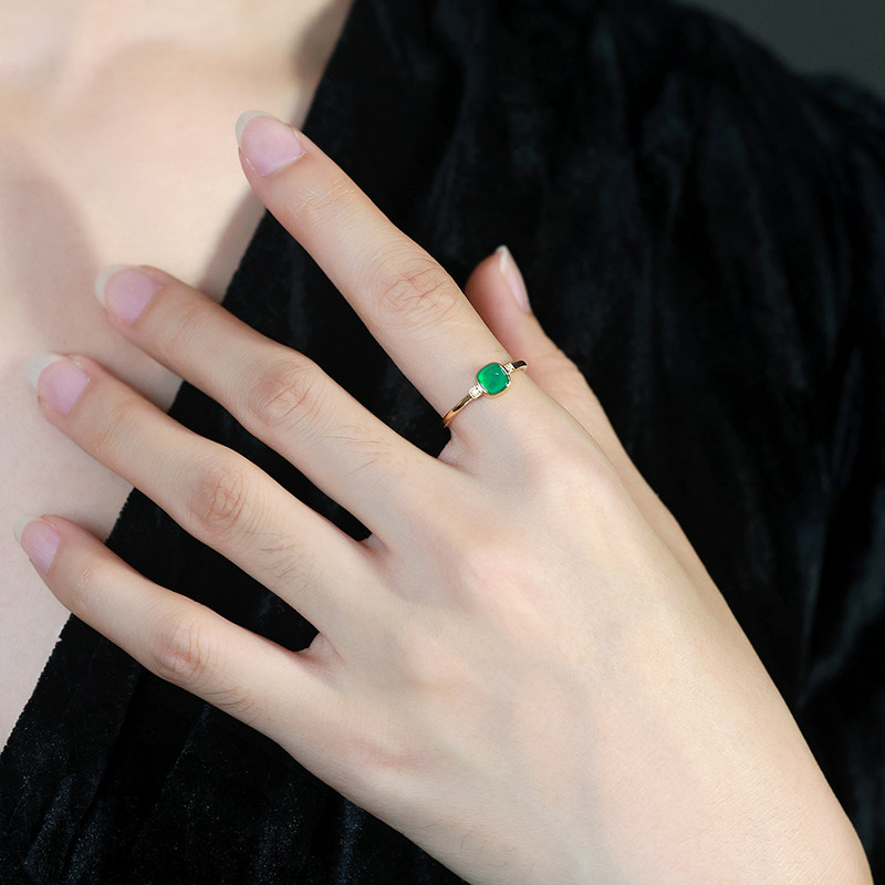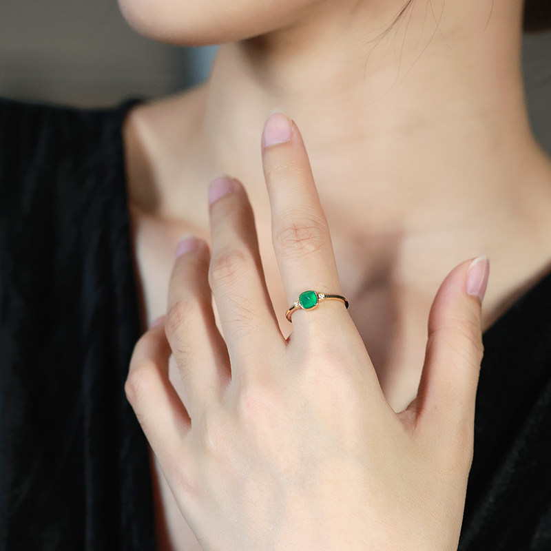 若华珠宝倾慕 哥伦比亚祖母绿戒指女18K金宝石尾戒彩宝指环定制