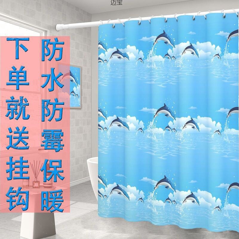 浴室浴帘布门帘窗帘布卫生间加厚隔断帘免打孔伸缩浴帘杆套装批发