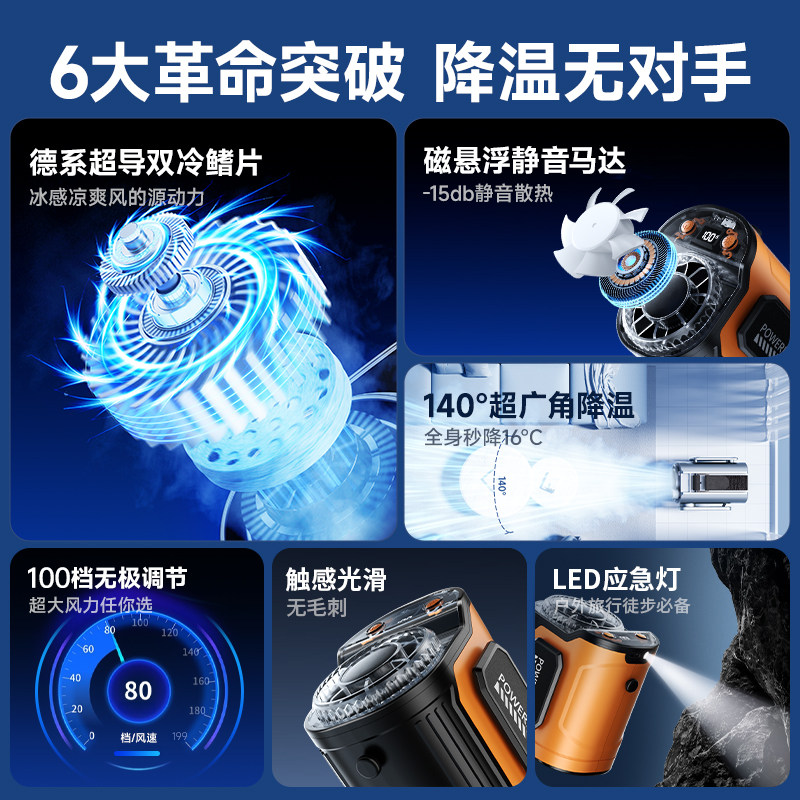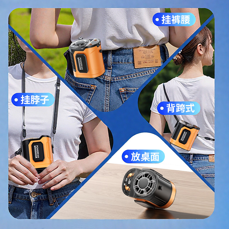 挂腰风扇随身便携式夹降温神器户外工地充电强力衣服手持涡轮制冷