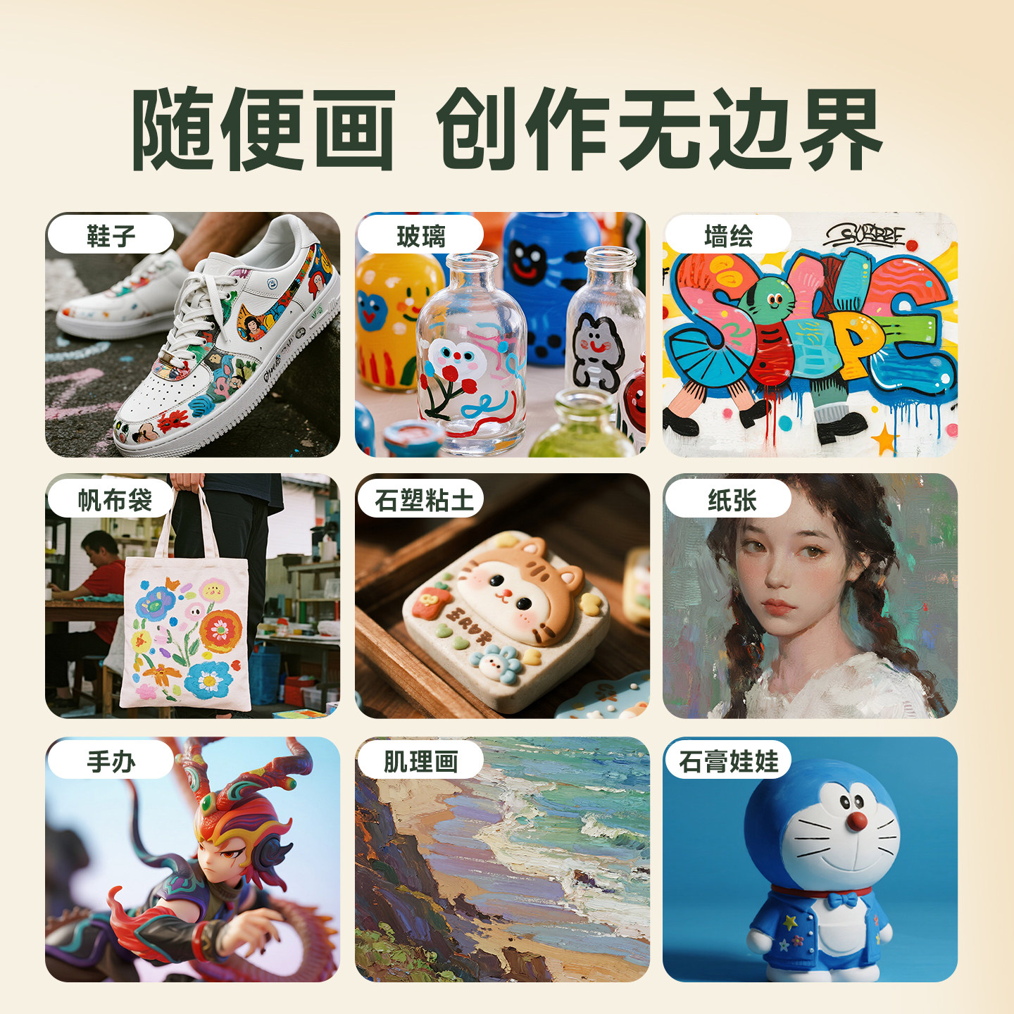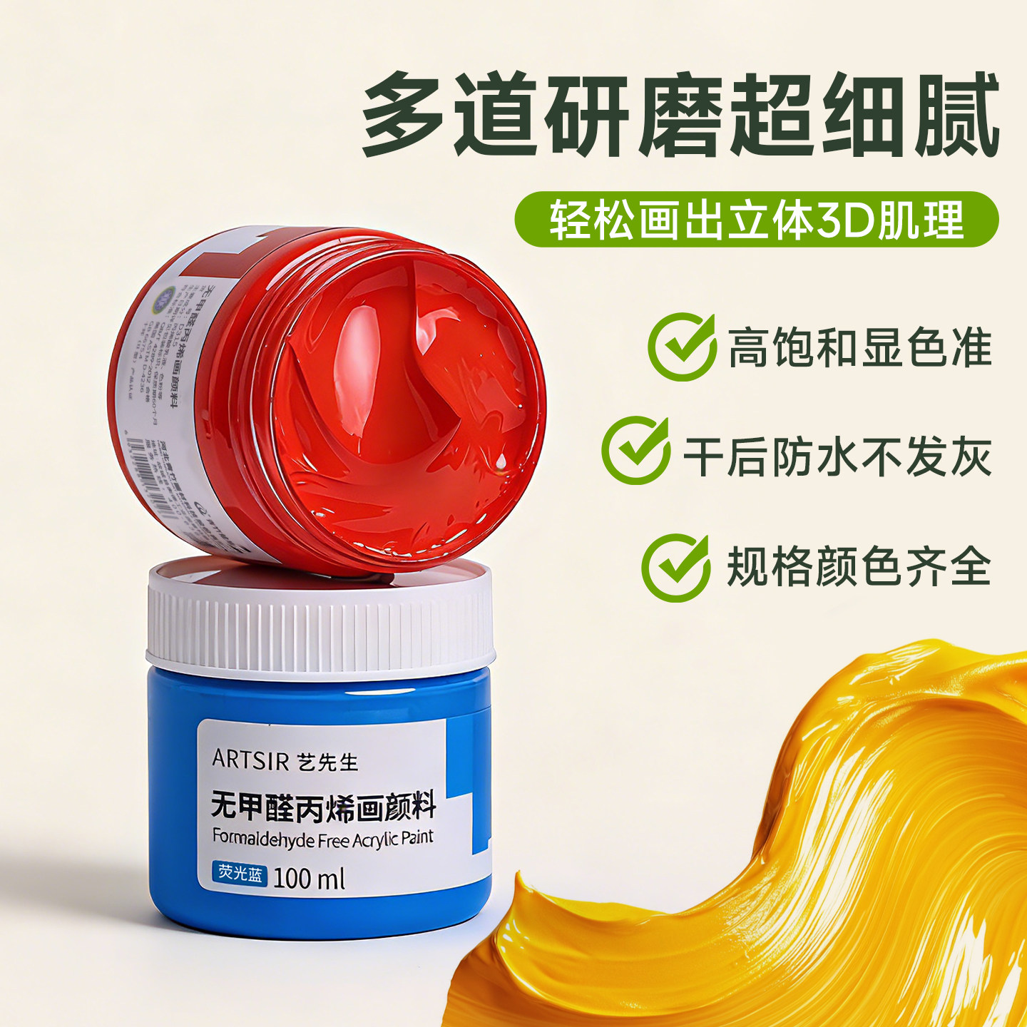 青竹牌无甲醛丙烯颜料防水不掉色300mll墙绘专用防晒diy肌理画纺织鞋涂鸦材料白色染料荧光儿童画画套装颜料