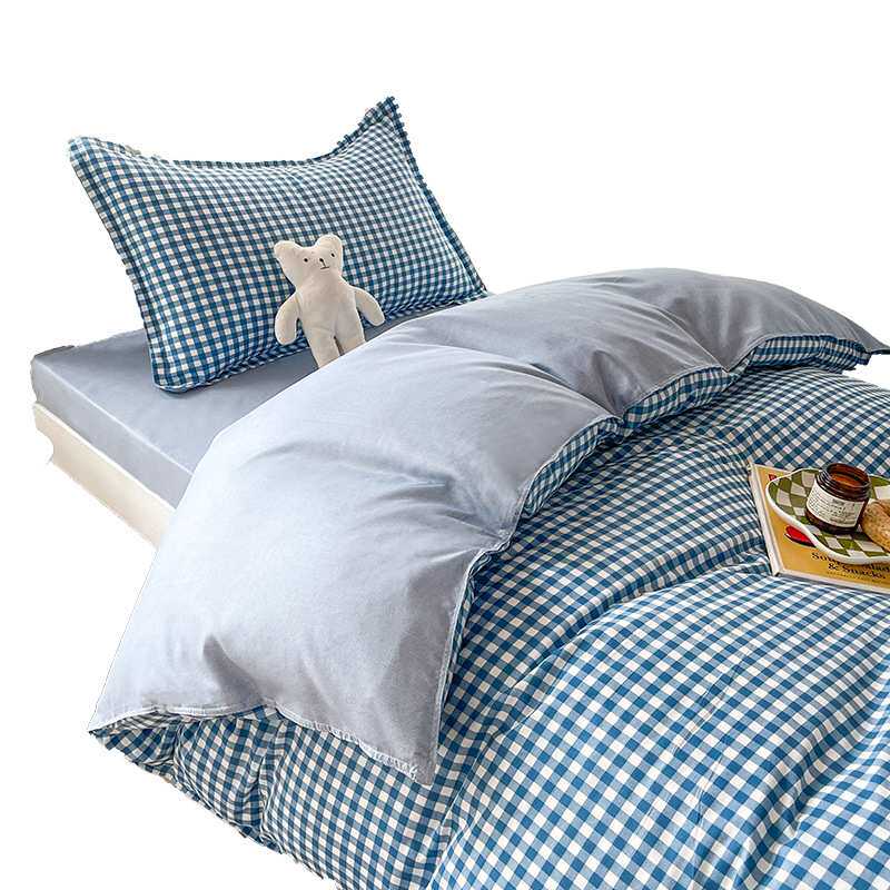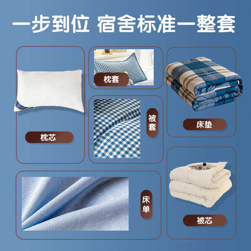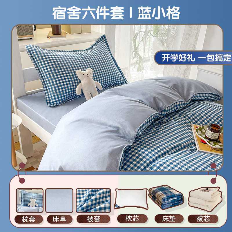 冬季宿舍六件套被子套装单人寝室床品全套一整套蓝小格学生上下铺