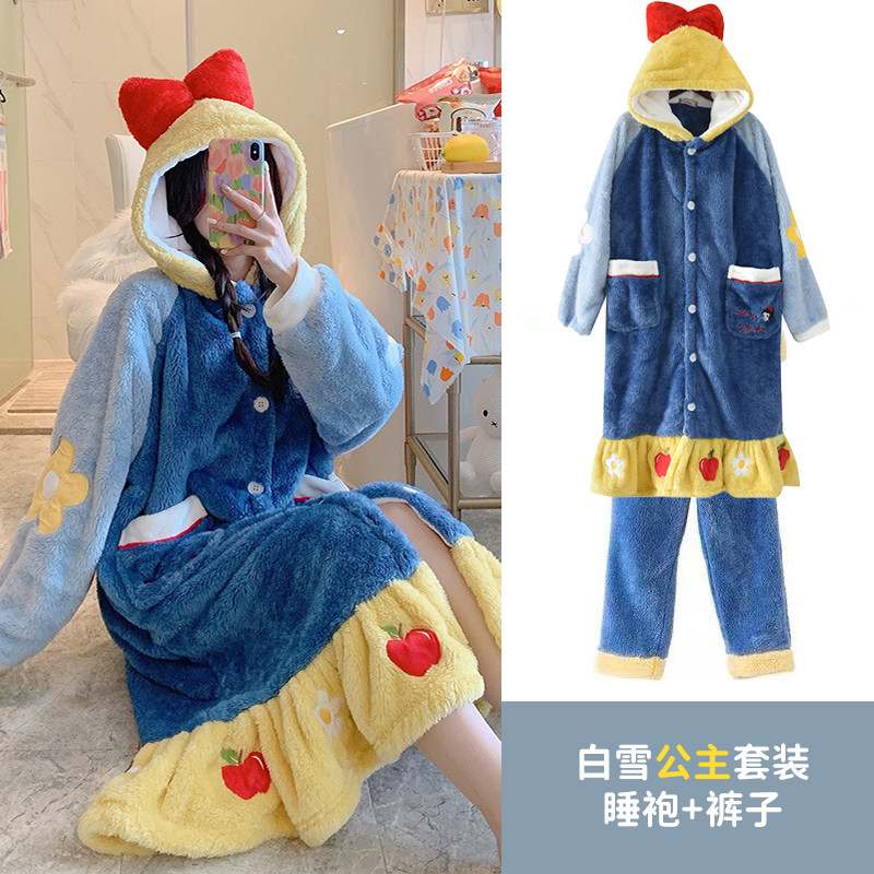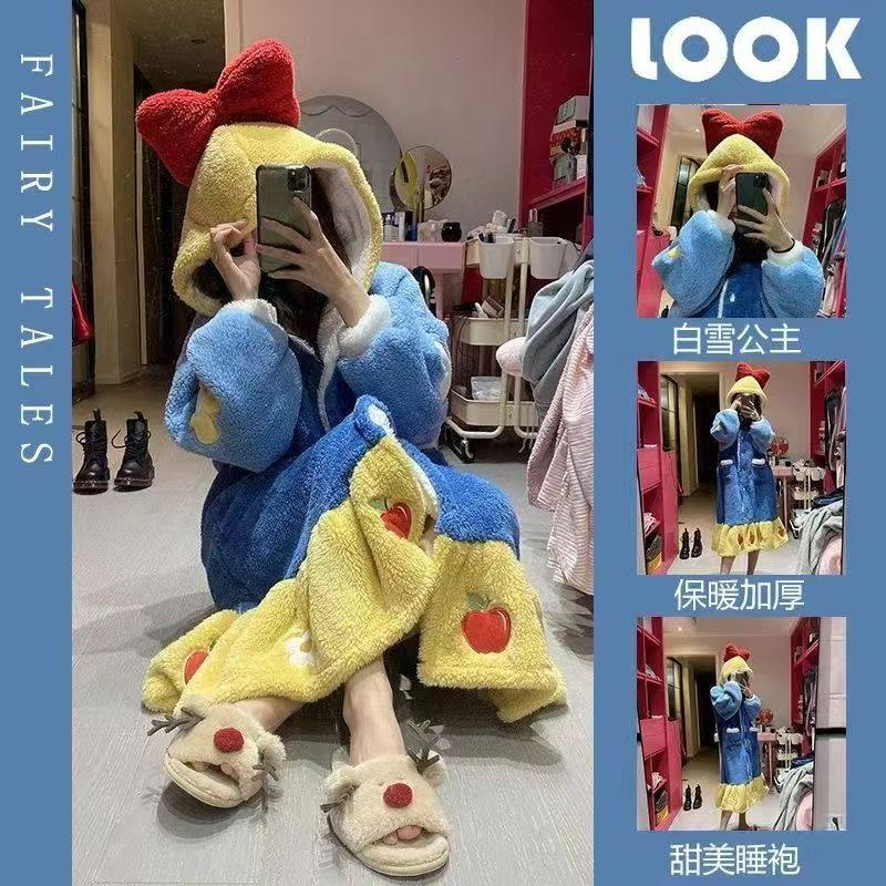 白雪公主睡衣女秋冬珊瑚绒睡衣女长款睡袍睡裙女冬季家居服暖睡衣