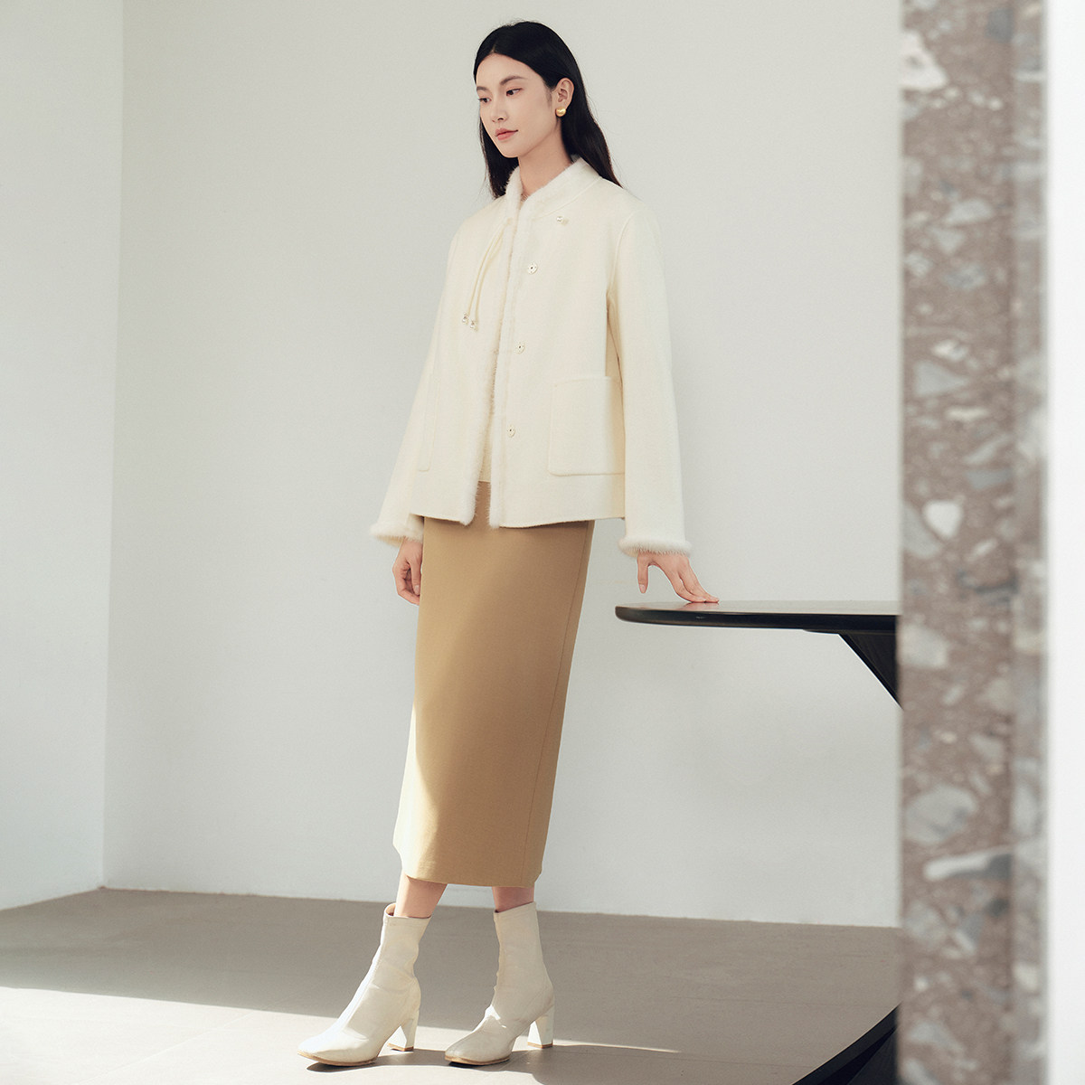 FINITY菲妮迪毛呢外套2025年冬季新款简约纯羊毛双面呢绒感大衣女