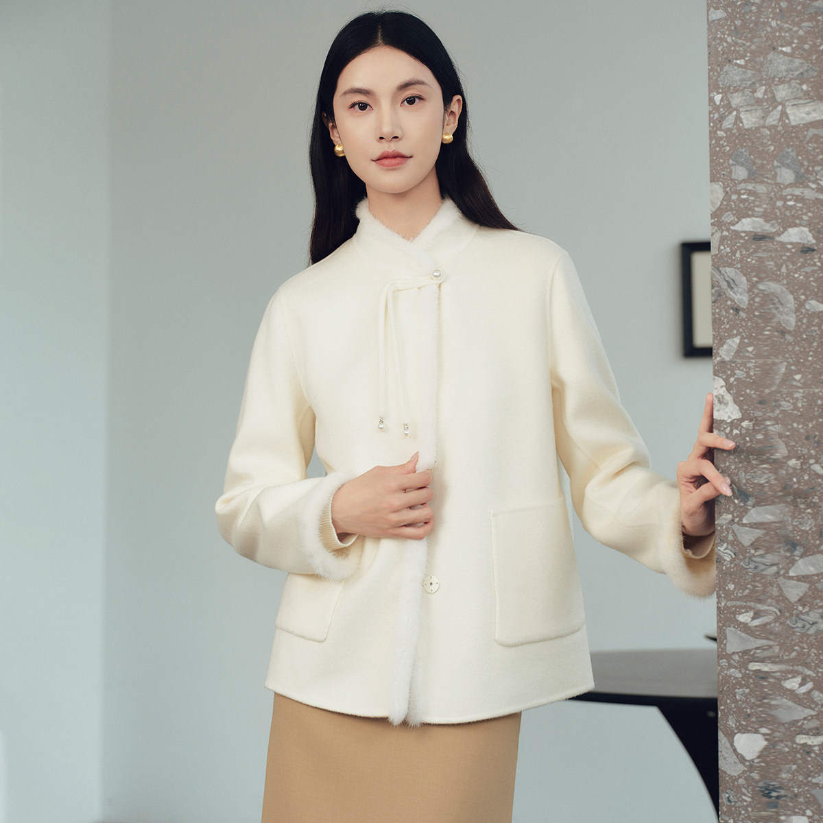 新中式双面羊毛大衣女短款2025新款国风羊毛双面呢外套时尚百搭