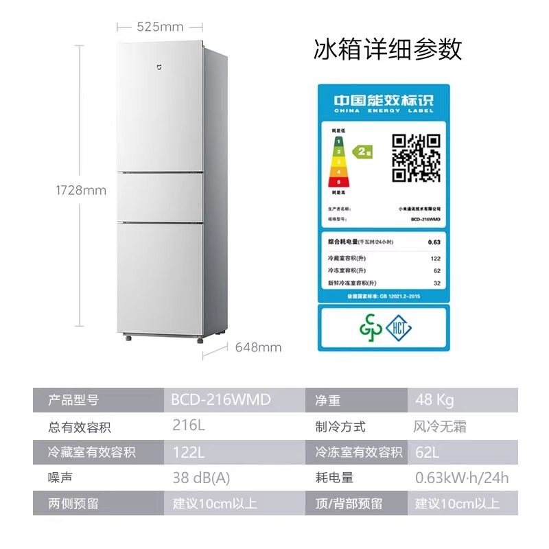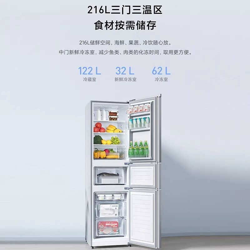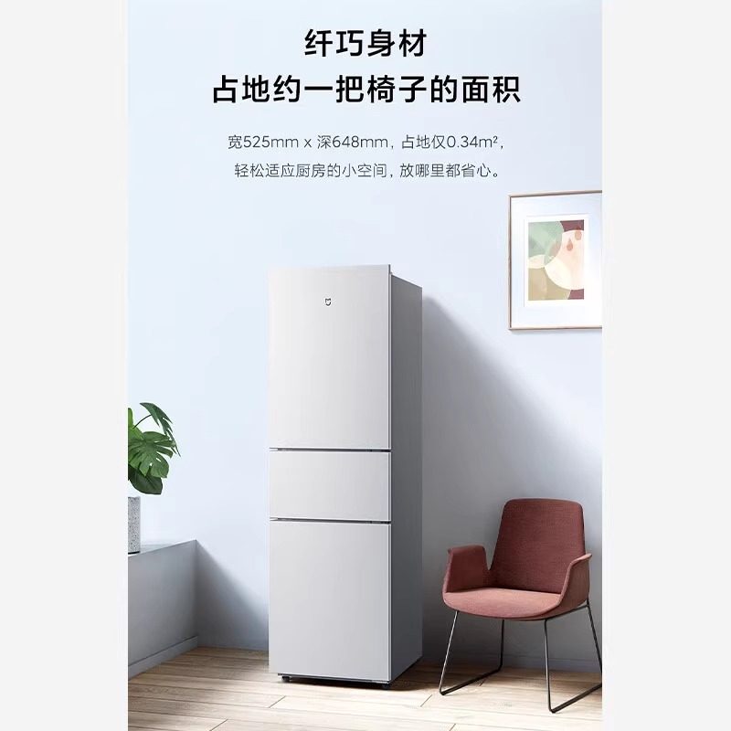 米家小米216升三门小冰箱直冷宿舍家用小型冷藏冷冻冰箱离子净味