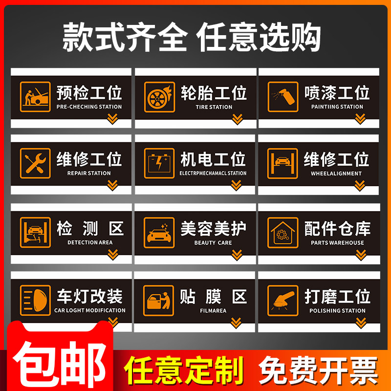 汽修厂吊牌指示区域牌提示牌汽车养护分区吊牌挂牌标识牌4s店汽车保养洗车精洗工位维修工位美容配件工位定制