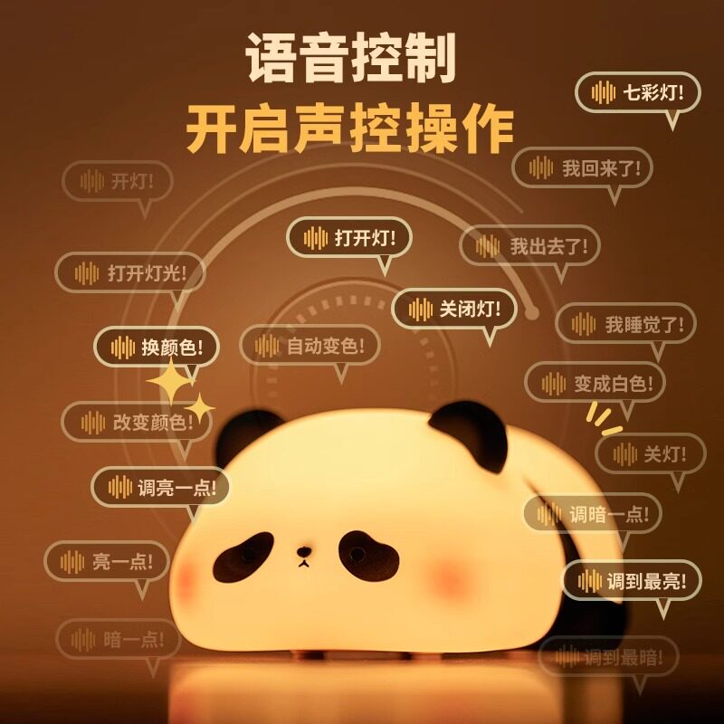 语音控制小夜灯熊猫智能熊猫声控usb家用发光节能氛围灯卧室宿舍
