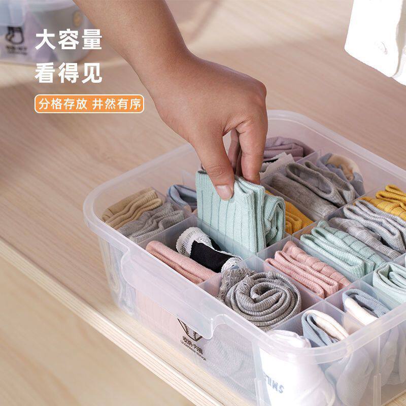 透明内裤袜子收纳盒带盖衣柜家用卧室多格翻盖衣物收纳箱宿舍家用