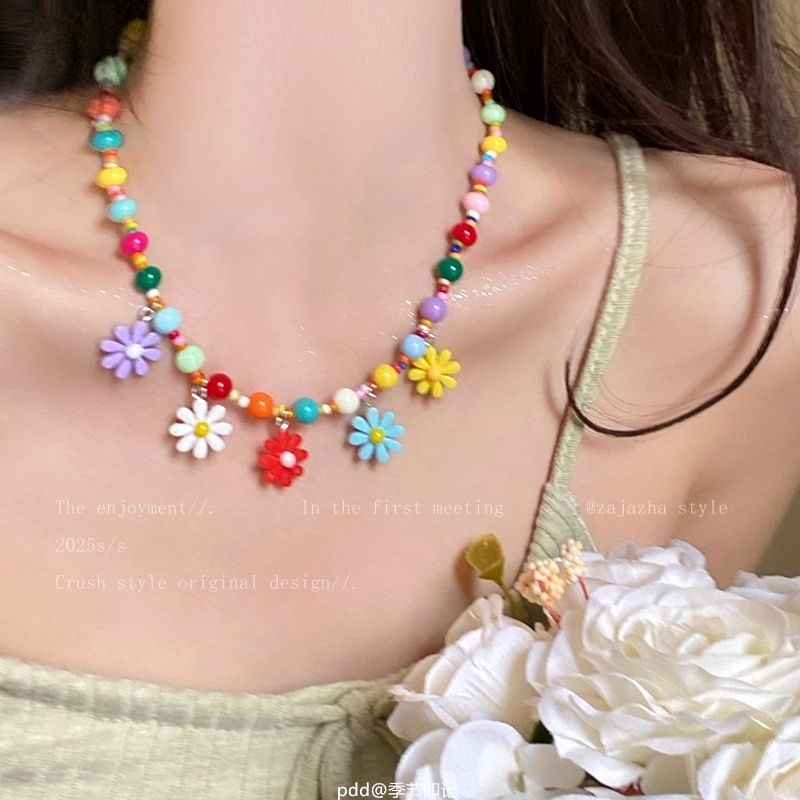 多巴胺撞色小雏菊锁骨链女款可爱小众设计颈链度假风甜美气质项链