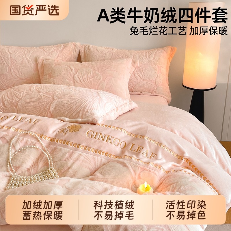 【顺丰快递】慕斯牛奶绒四件套暖绒套件床单床笠秋冬保暖牛奶绒