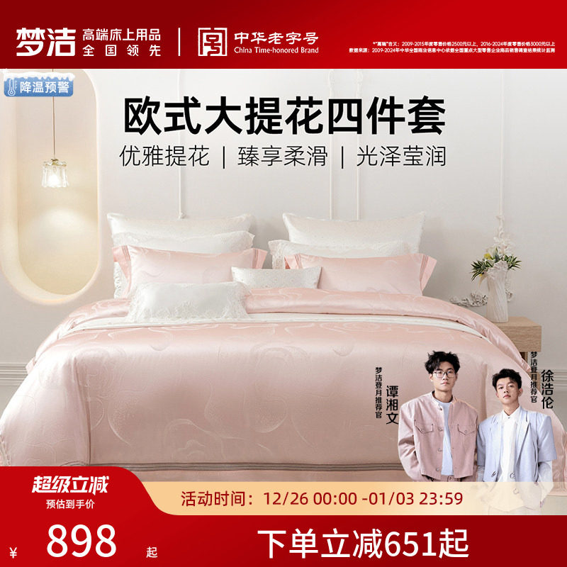 梦洁床上四件套全棉纯棉2025新款床单高精密提花被套高档床品套件