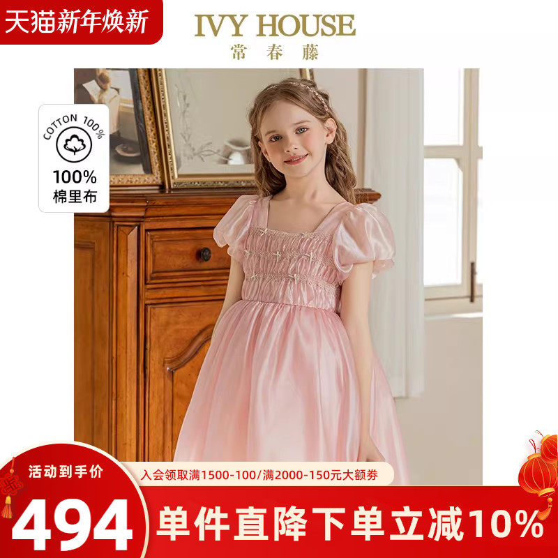 IVY HOUSE常春藤童装女童秋季款 法式轻奢浪漫层次网纱仙女连衣裙