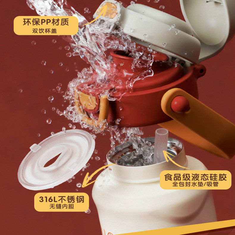 miiiiichan联名双饮儿童保温杯 316L不锈钢