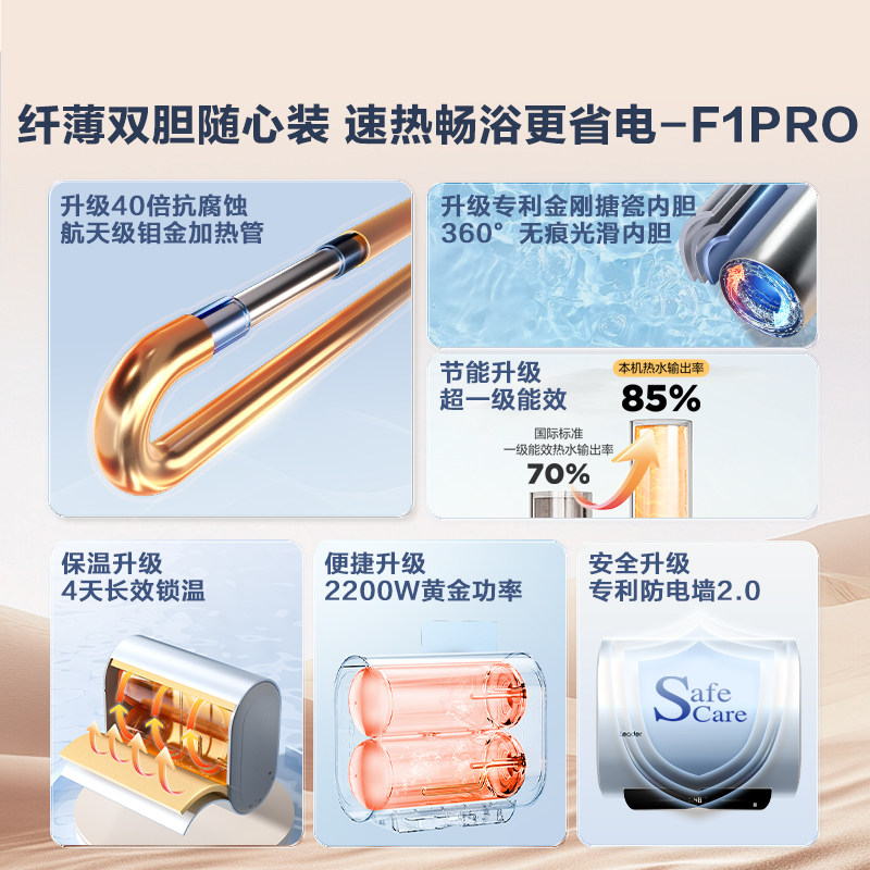 海尔出品统帅电热水器官方一级能效超薄家用洗澡双胆扁桶F1PRO