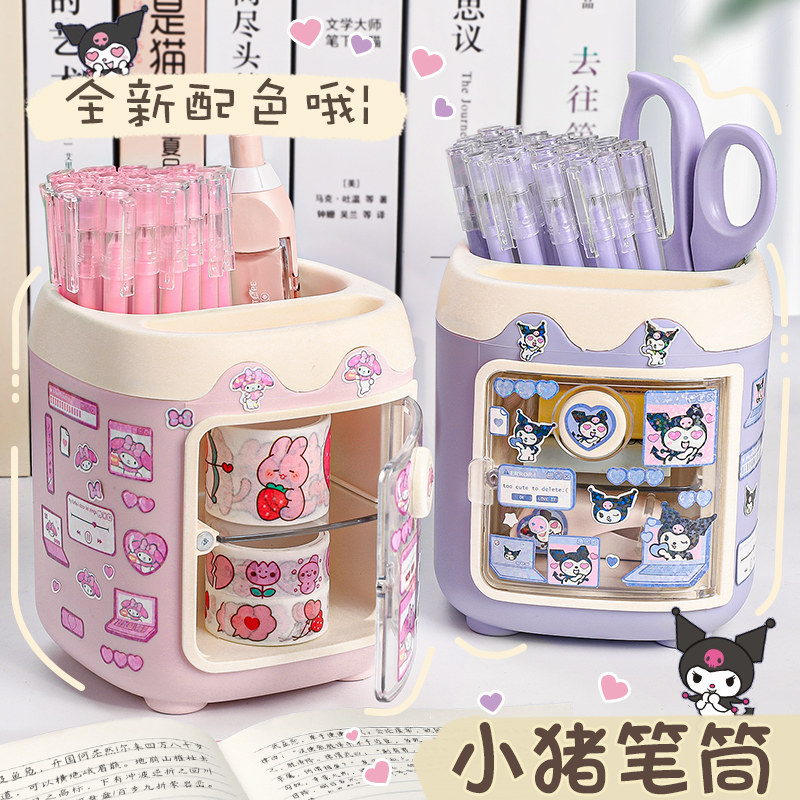 可爱小猪笔筒儿童女孩子小学生桌面文具收纳盒书桌笔盒放装插笔的冰箱笔桶女生创意摆件