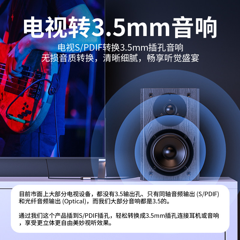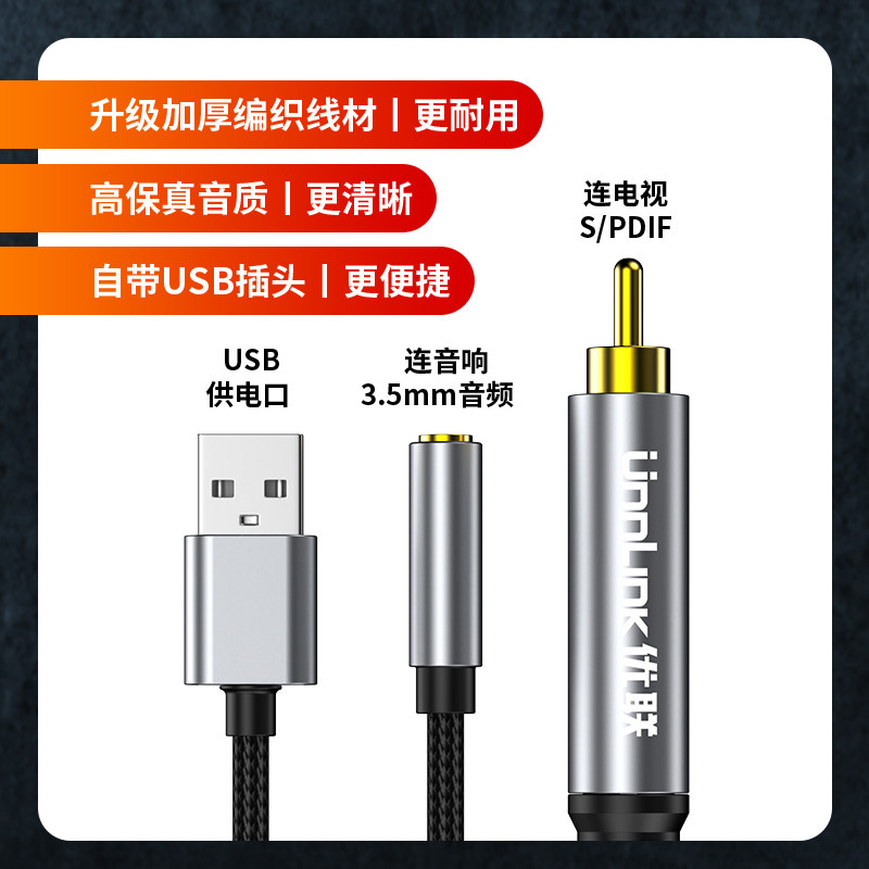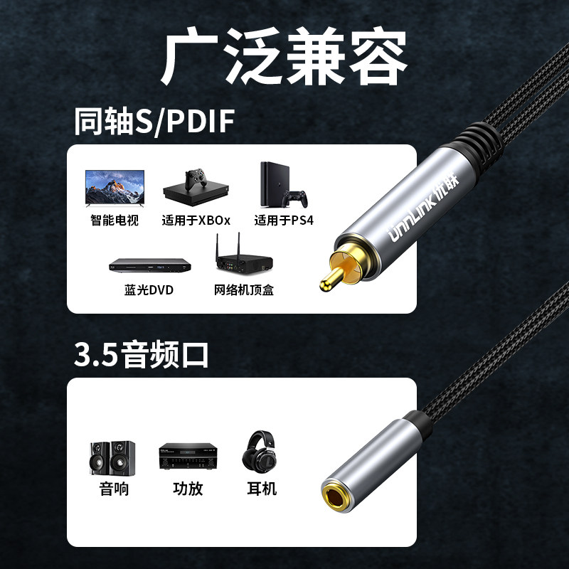 优联同轴spdif音频转换器莲花电视机转换3.5mm母口音响功放转接头