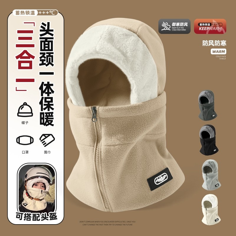 骑行秋冬季防风一体帽子男骑车防寒面罩围脖电动车头盔保暖内胆女