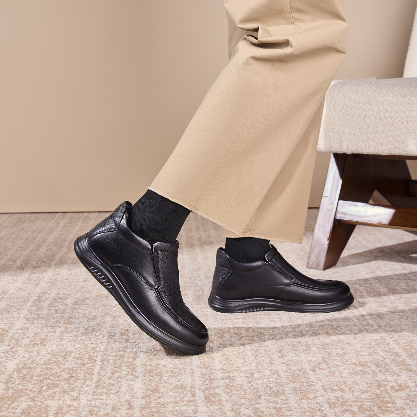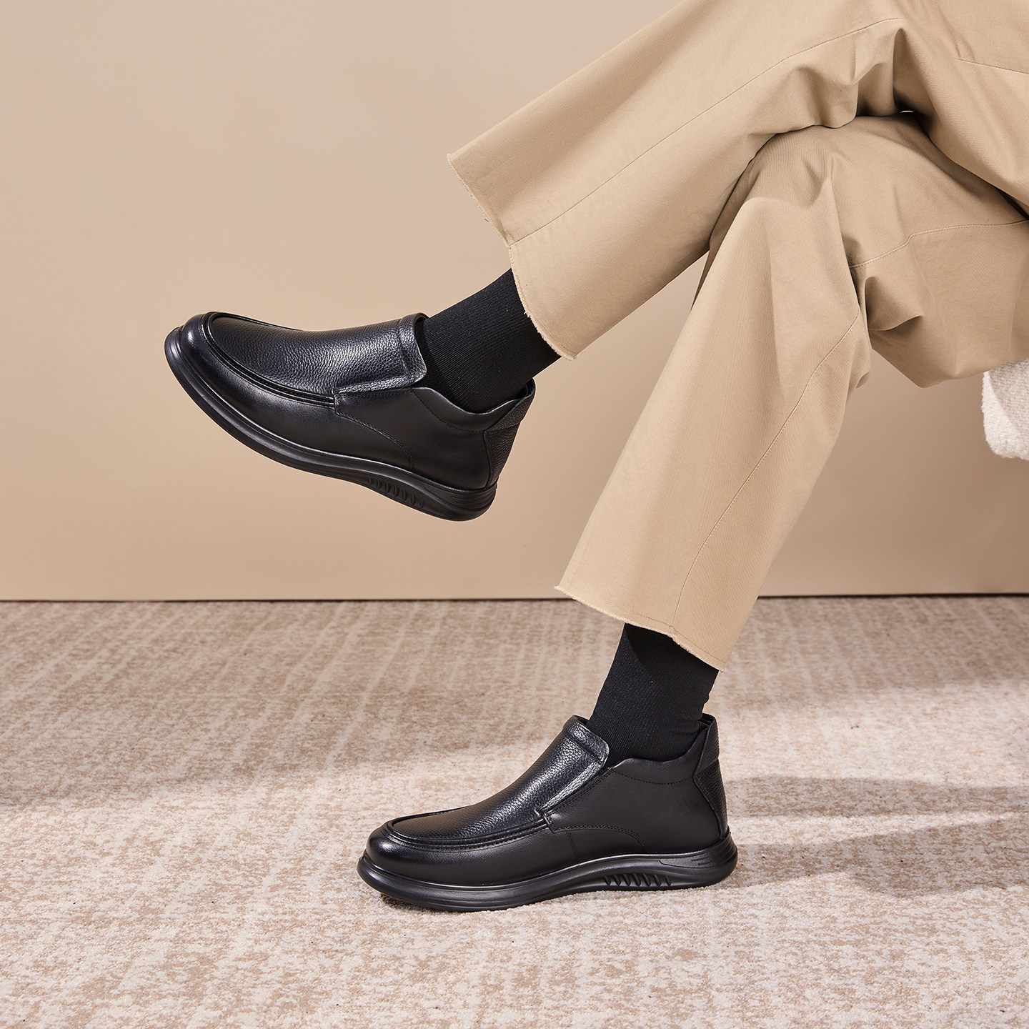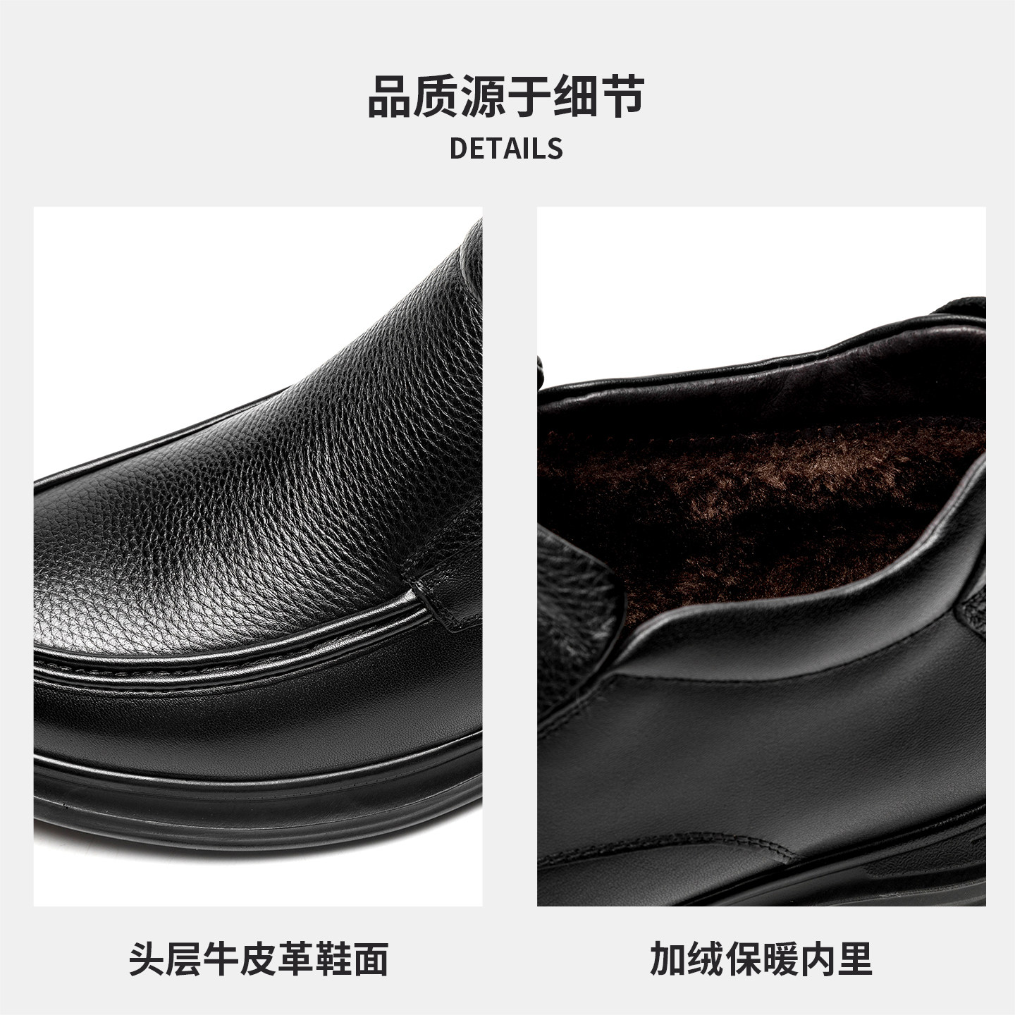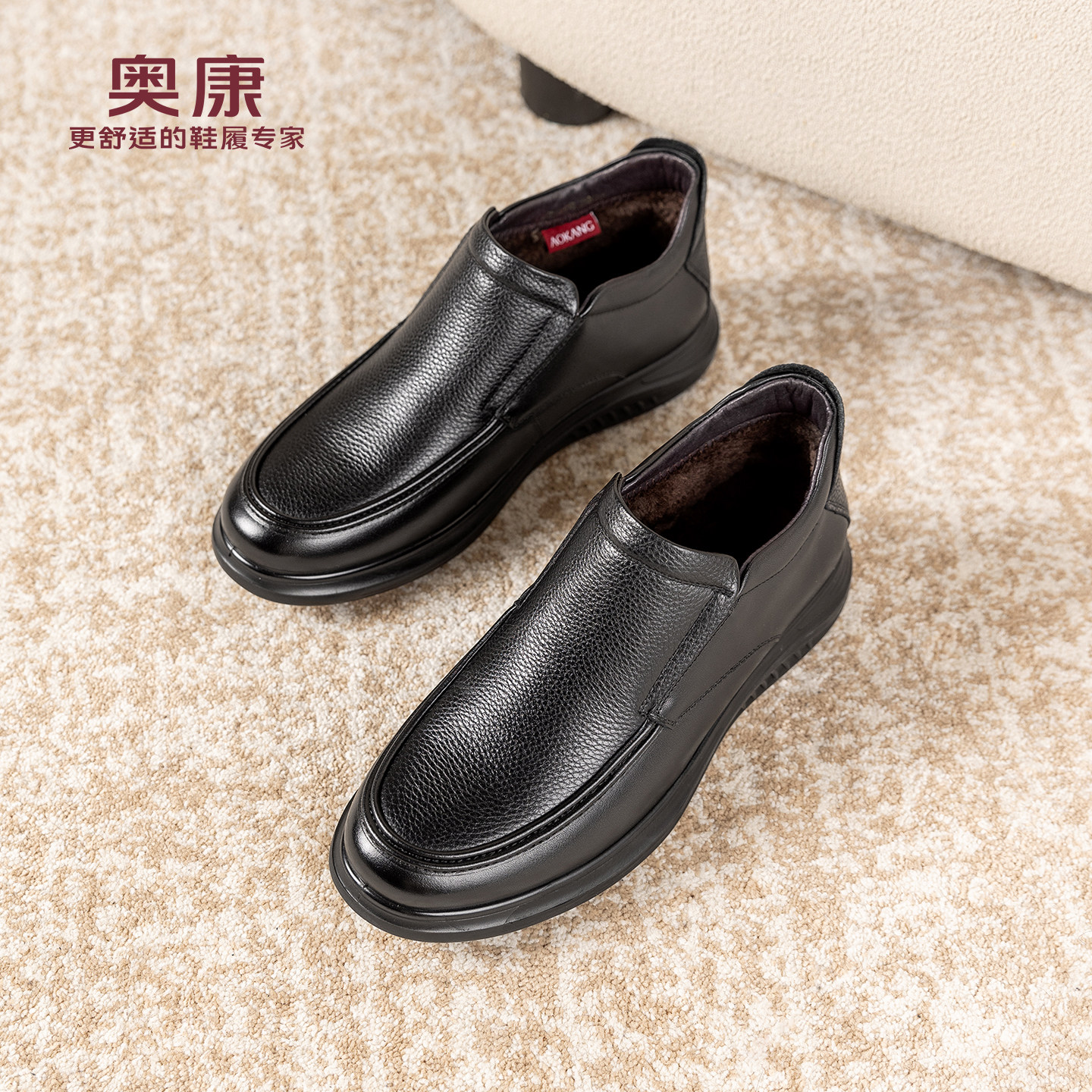 奥康 男鞋2025冬季新款乐福鞋加绒保暖中帮公务一脚蹬爸爸豆豆鞋