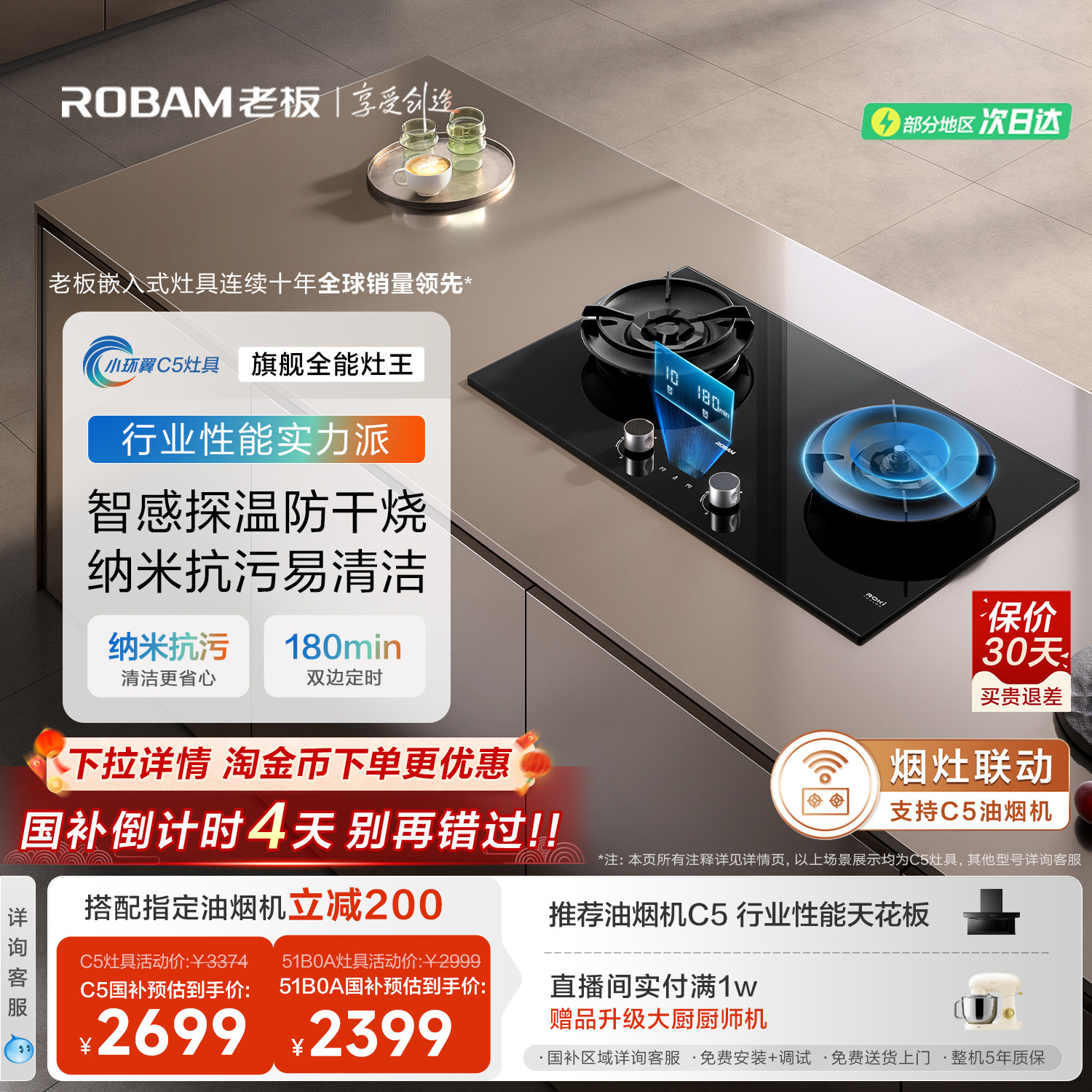 [全能灶王]老板定时防干烧C5/51B0A家用燃煤天然气双灶台具官方