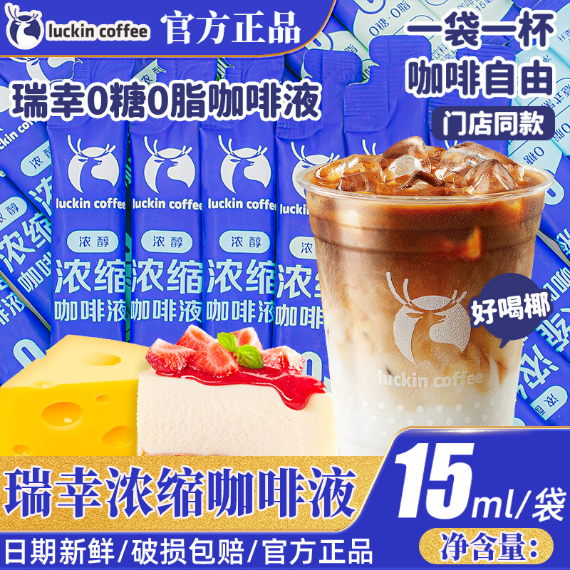 瑞辛咖啡液浓缩冰美式咖啡0糖0脂无糖黑咖啡生椰拿铁15ml袋装饮料