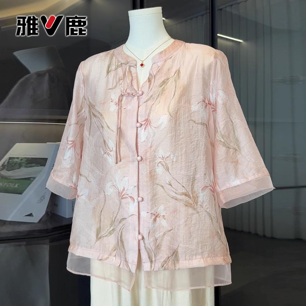 【雅鹿正品】中国风妈妈装衬衫女短袖春装新款夏季套装气质两件套