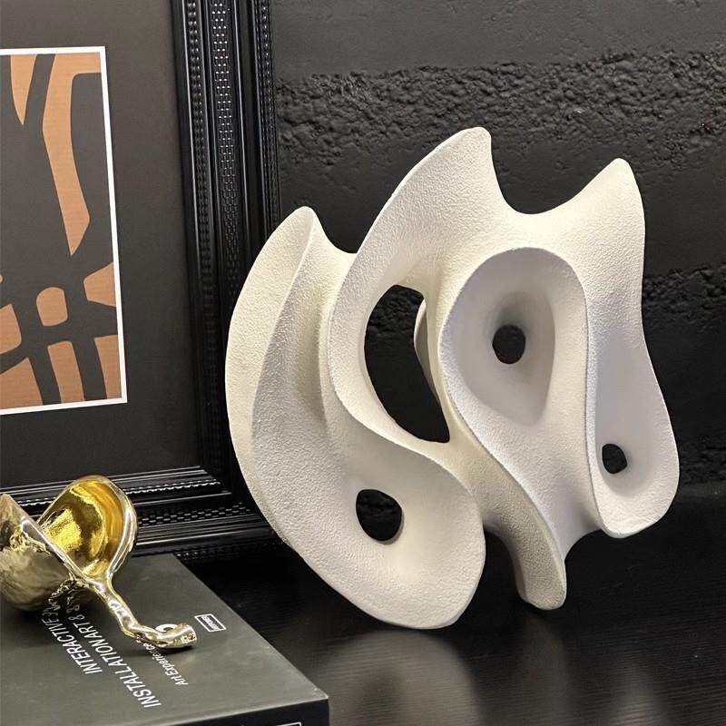 现代艺术白色律动几何波浪漫摆件软装饰品样板间客厅茶几书房摆设