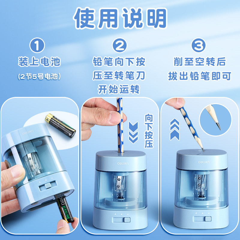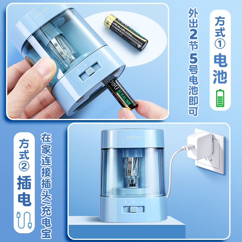 得力自动削笔刀电动文具儿童小学生卷转笔刀全男孩铅笔刀削笔器女孩素描刨笔机旋绞笔刀销笔修笔充电学习用品