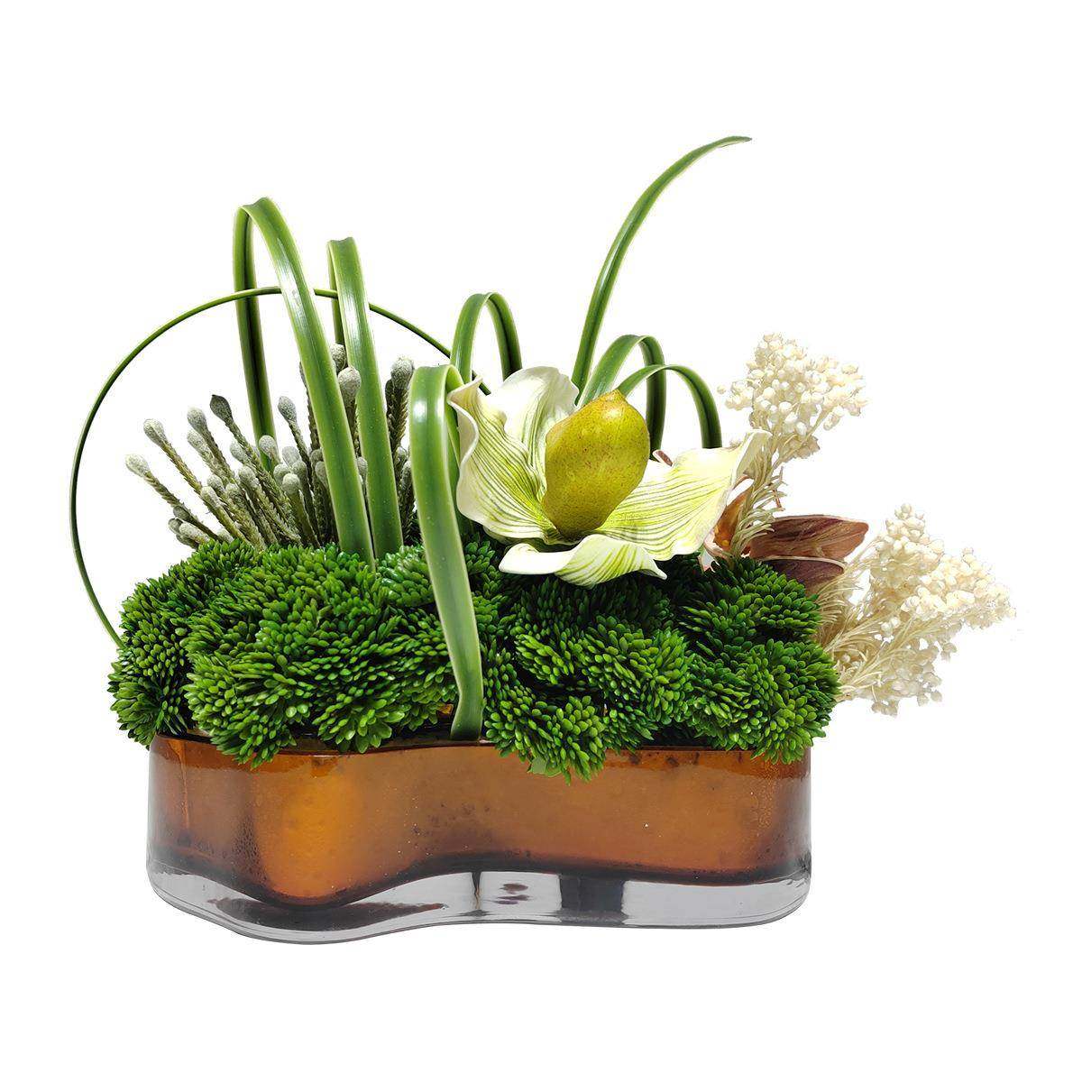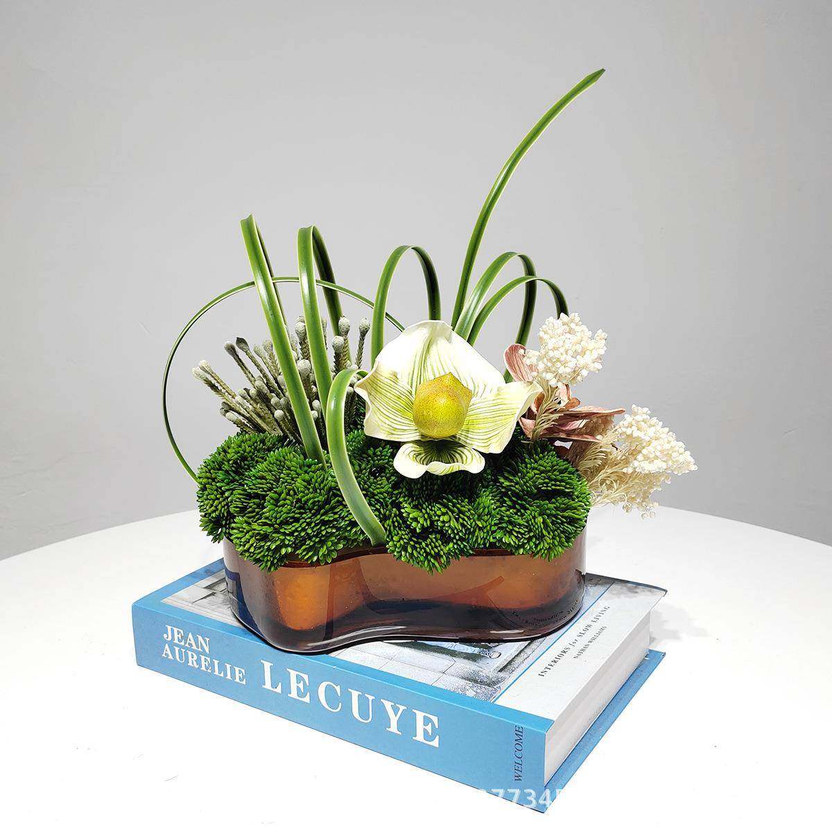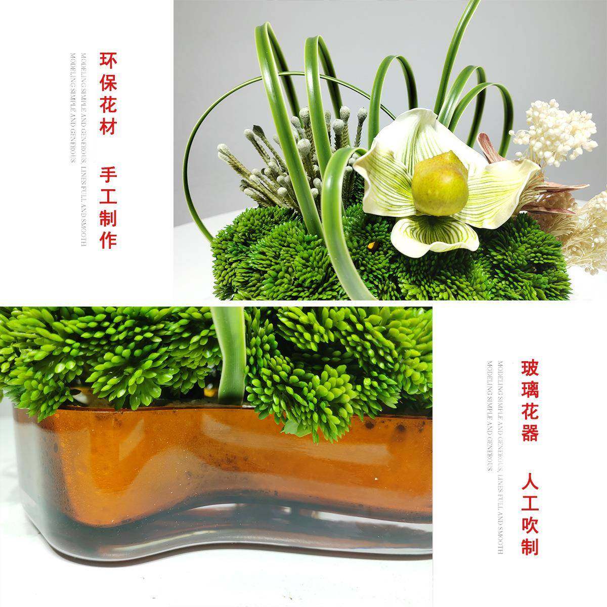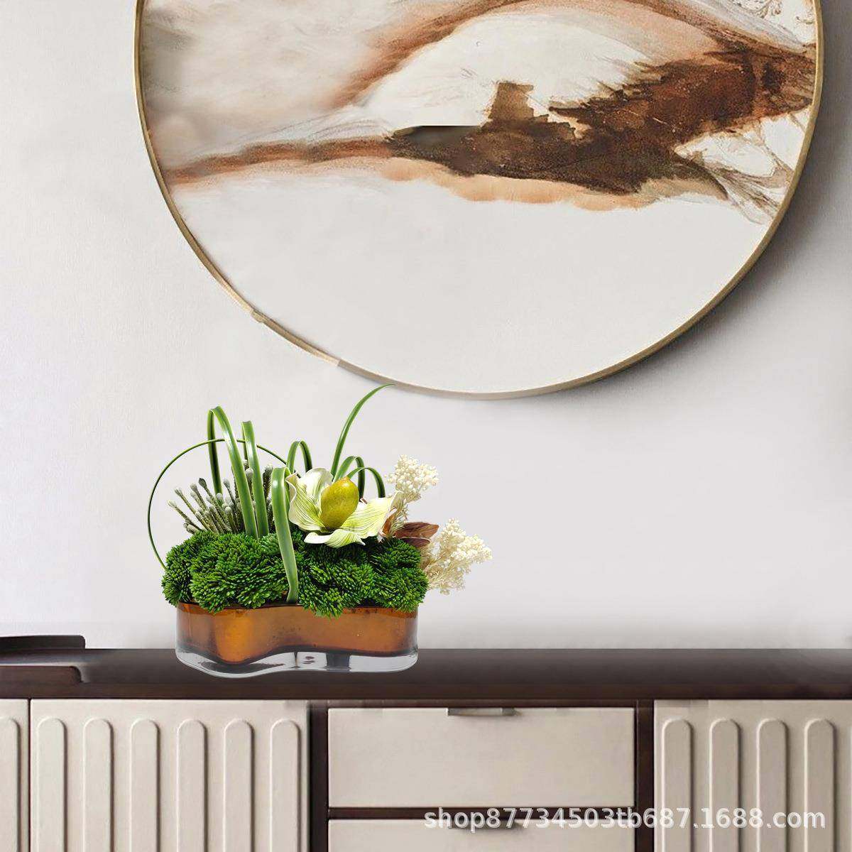 现代轻奢客厅电视柜茶几摆放仿真花植物盆景书柜台面家居花艺装饰