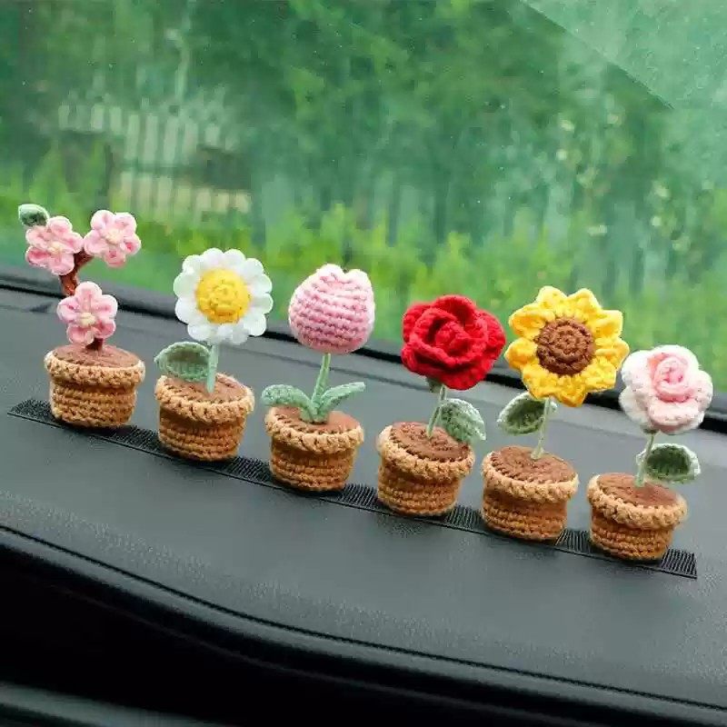 钩织diy材料包迷你盆栽花束毛线手工编织花朵自制郁金香车载摆件