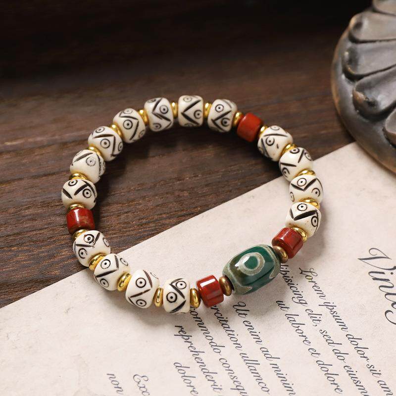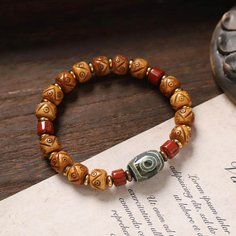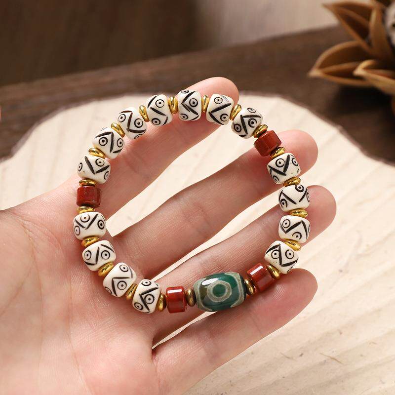 西藏天然牦牛骨雕刻手串天珠玛瑙复古民族风男女藏式念珠文玩手链