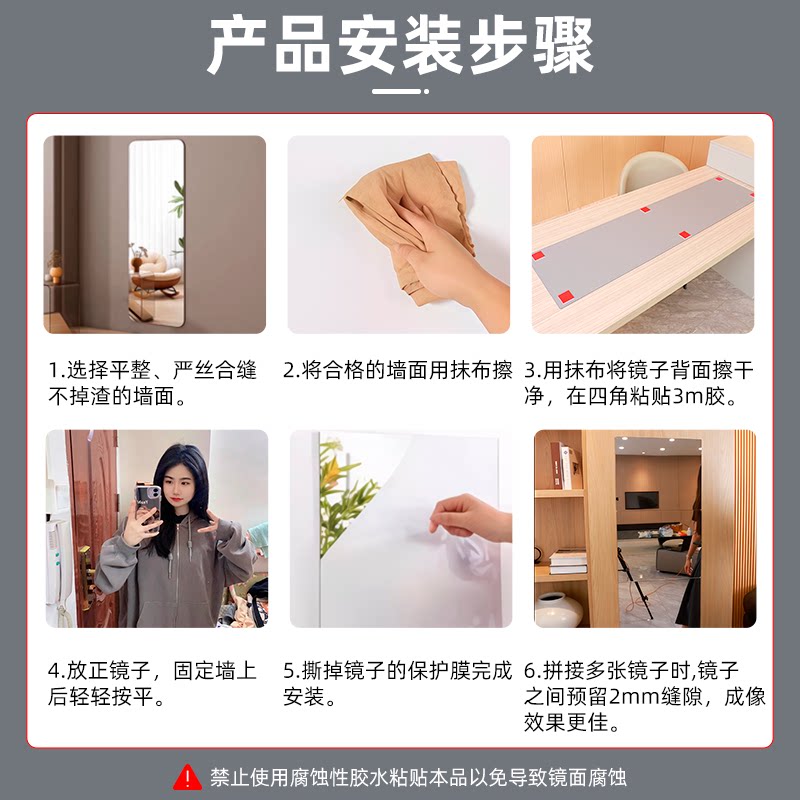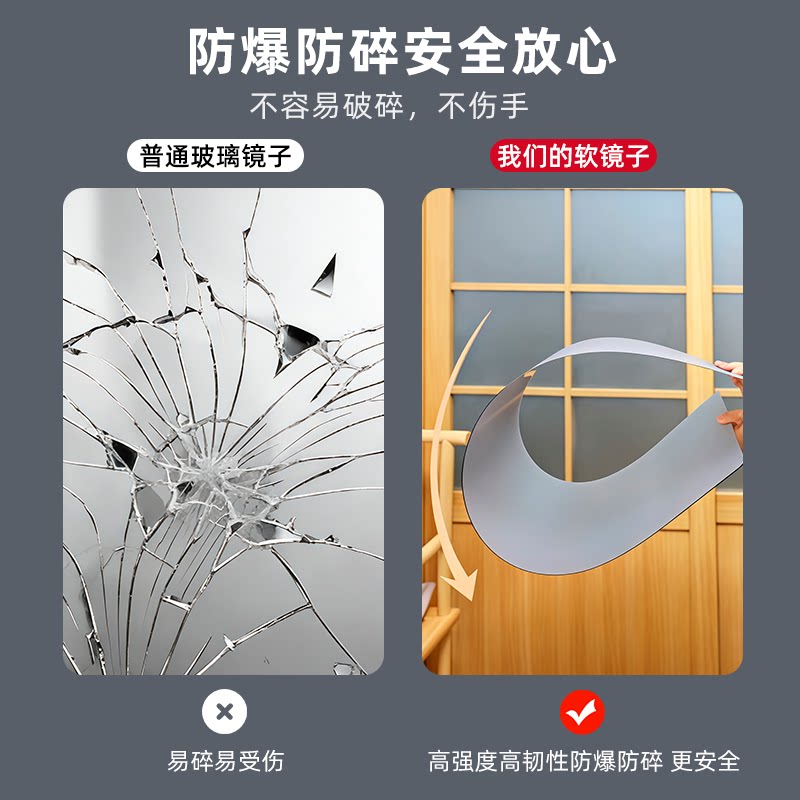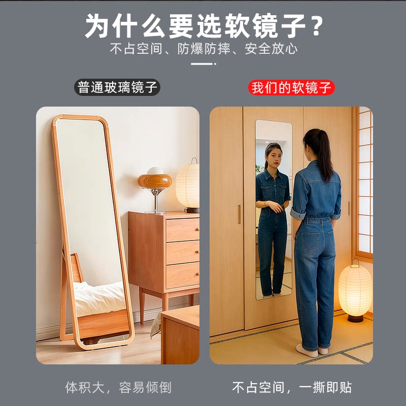 全身镜子贴墙自粘衣柜镜子内装隐形宿舍卧室玻璃柜门免打孔穿衣镜