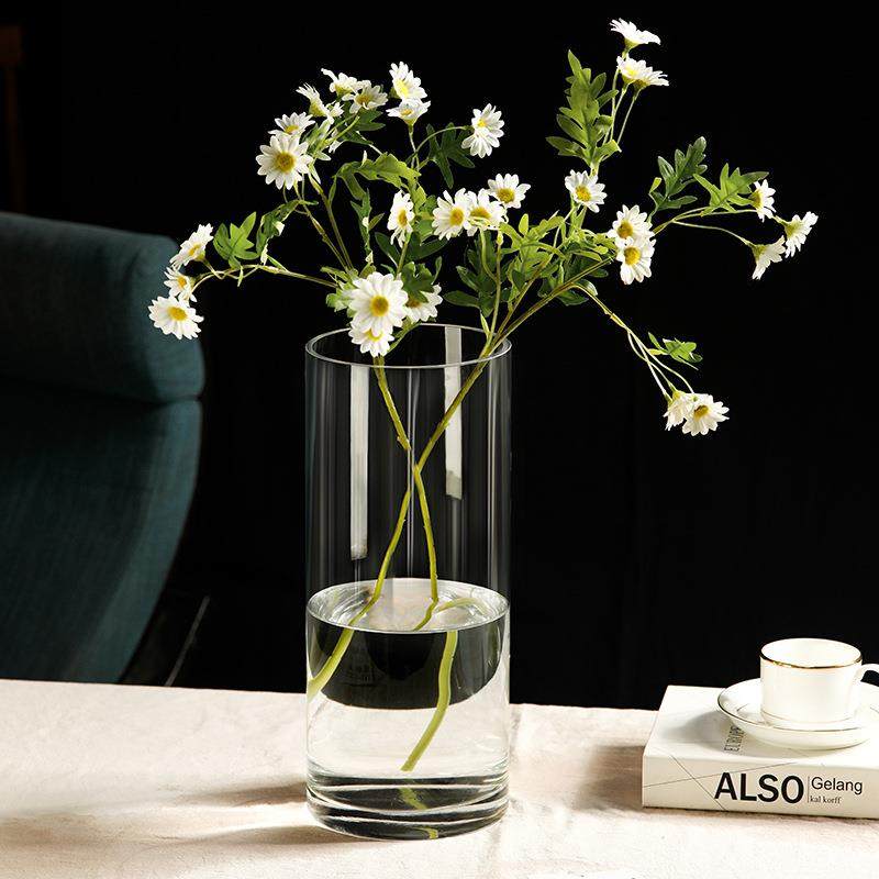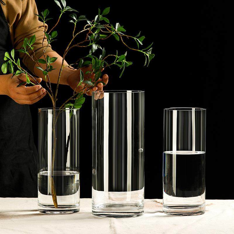 轻奢玻璃花瓶直筒透明水养鲜花百合富贵竹ins高颜值客厅装饰摆件