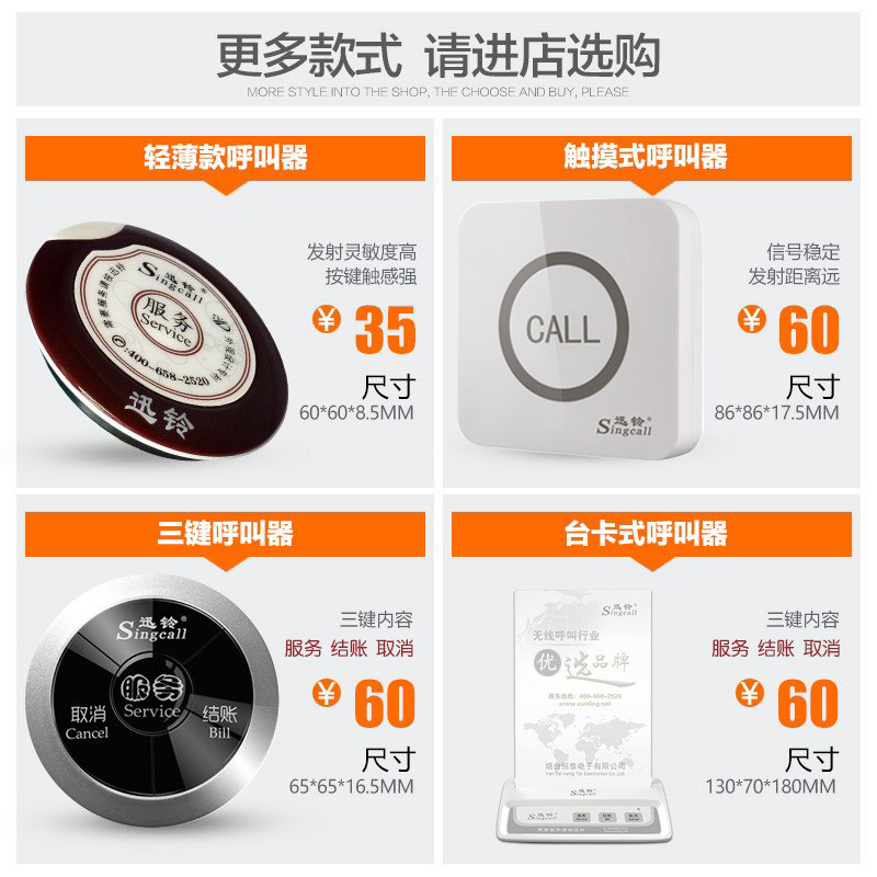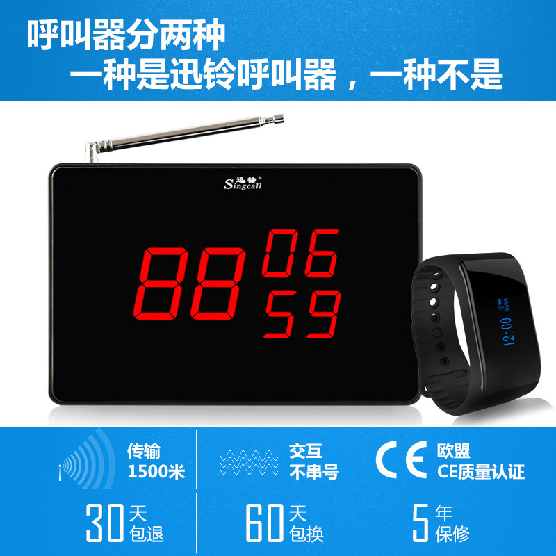 一键呼叫 迅铃无线呼叫器手环接收器餐厅茶楼服务铃银行柜台叫人铃会所棋牌室呼叫铃茶馆咖啡厅饭店讯铃