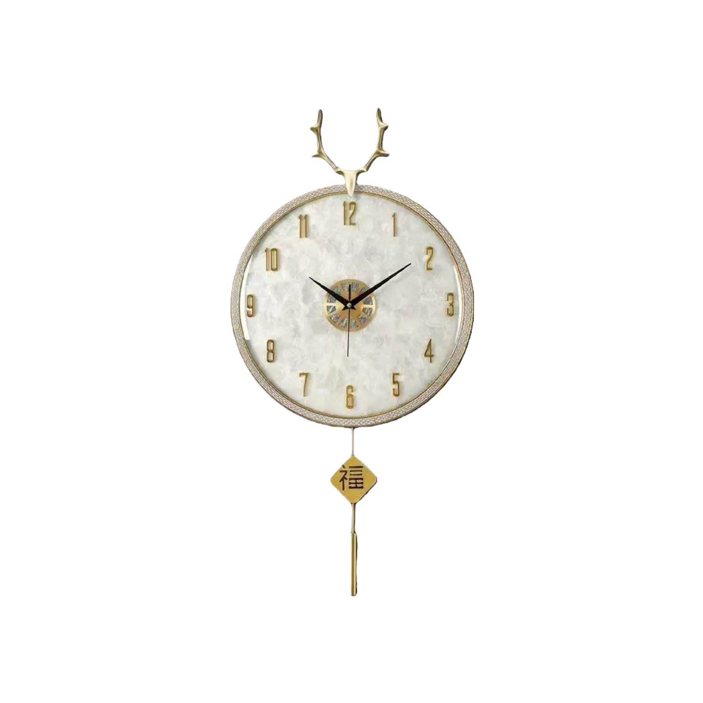 创意时尚手工珐琅彩黄铜小鹿挂钟客厅静音装饰钟表