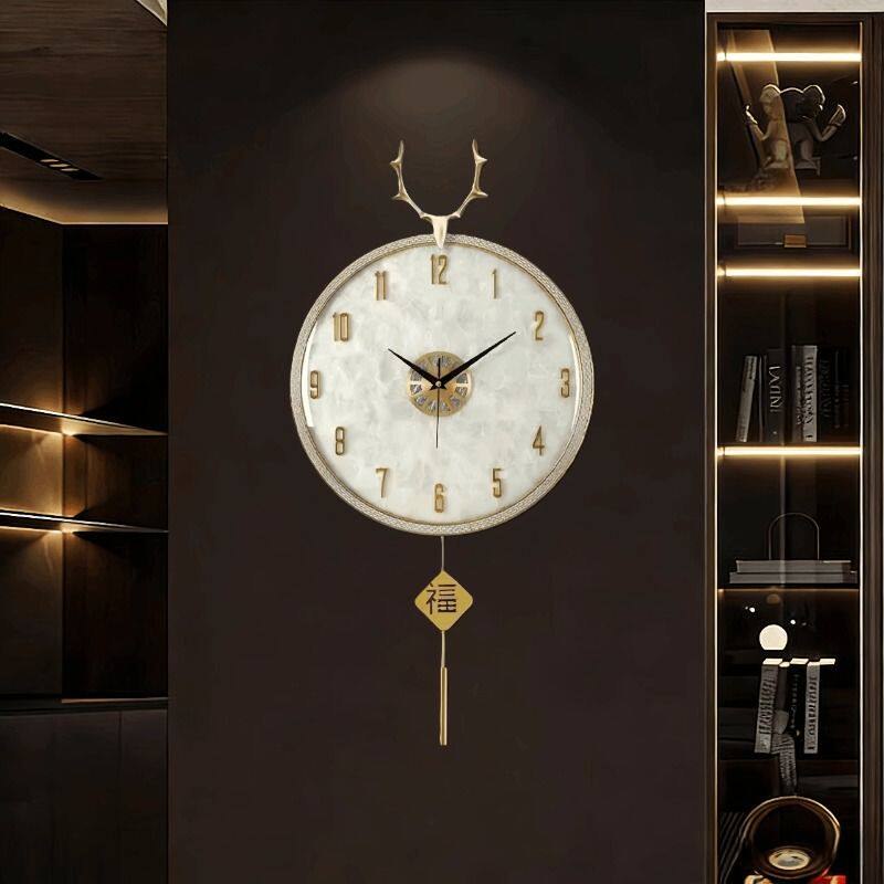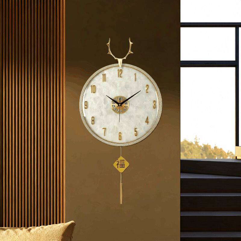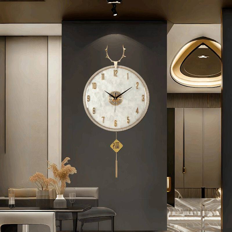 2026新款免打孔静音挂钟客厅吉祥福禄石英钟餐厅创意装饰钟表