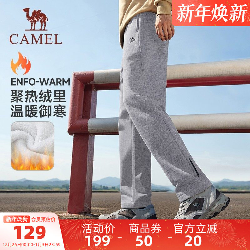 骆驼狂热加绒裤男保暖秋冬季运动健身宽松长裤休闲直筒卫裤女