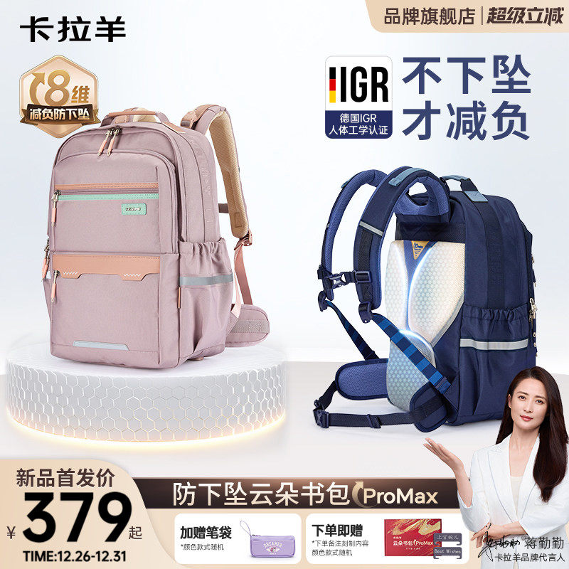 【新款】卡拉羊30L中学生书包云朵ProMax8维减负护脊超轻大容量双肩包男高中生书包女生初中生书包官方旗舰店