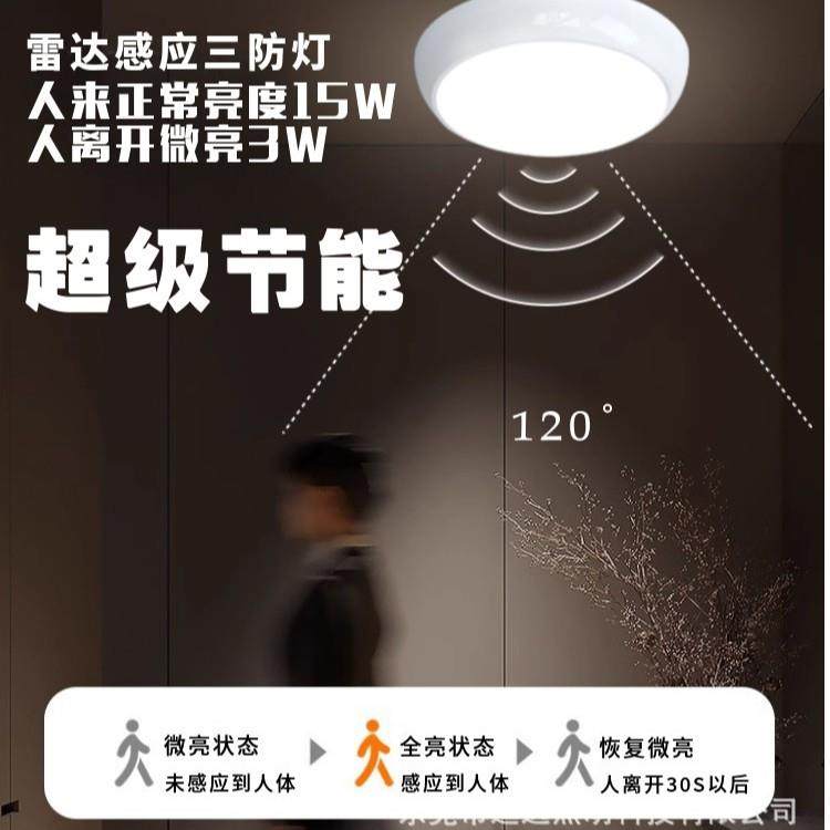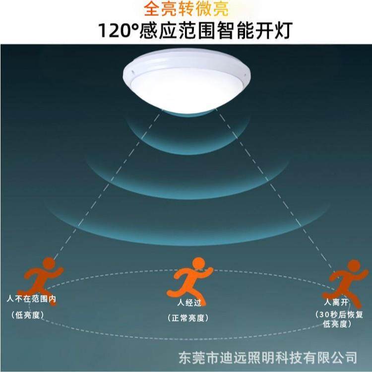 LED雷达感应吸顶灯全亮转微亮智能切换三防灯工程定 制感应灯具