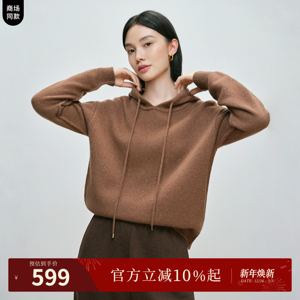 【金豆豆羊毛衫】商场同款naivee纳薇25冬新款慵懒宽松连帽针织衫